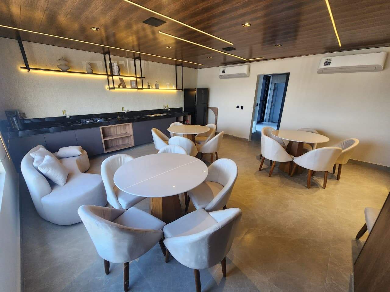 Apartamentos com 76m² possuindo Sala ampla para dois ambientes, varanda gourmet, cozinha com área de serviço integrada, três quartos (sendo uma suíte e um com banheiro reversível)