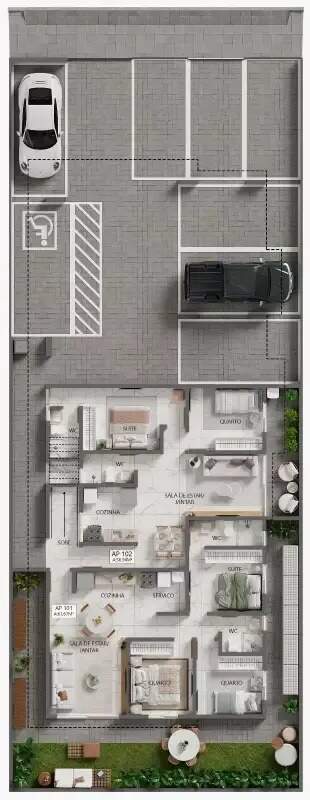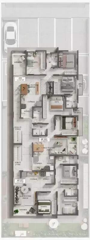 Este apartamento foi pensado para quem valoriza bem-estar: sala de estar e jantar integrada, varanda para relaxar, cozinha funcional, além de três quartos bem distribuídos, sendo uma suíte. Para completar, conta ainda com banheiro social que traz praticidade no dia a dia.