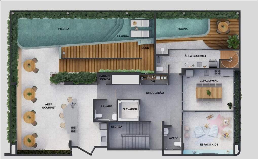 O empreendimento tem uma área de lazer com piscina, prainha, espaço gourmet, espaço wine, espaço kids, elevador e muito mais para garantir a sua diversão.