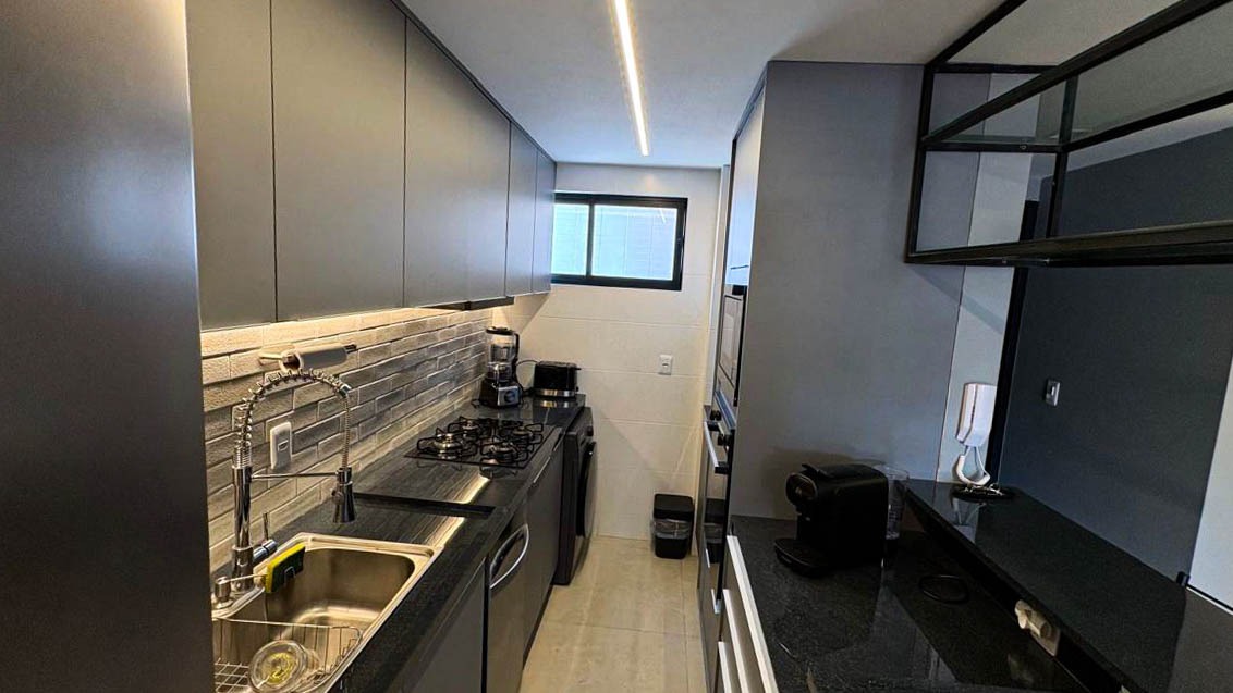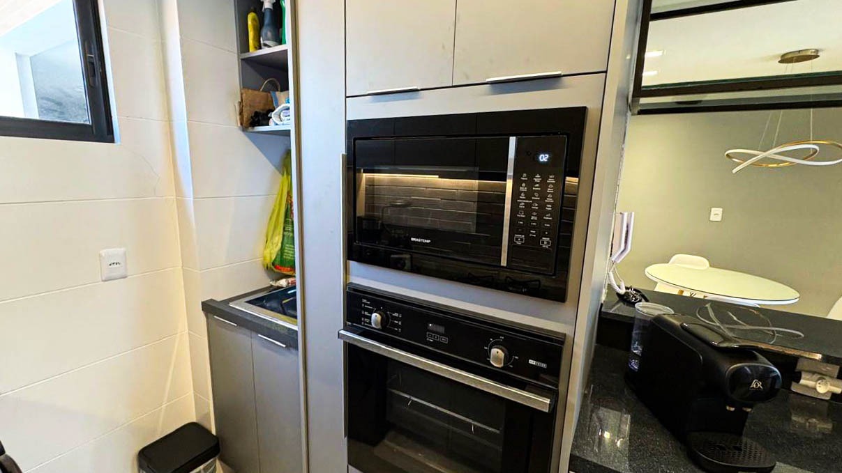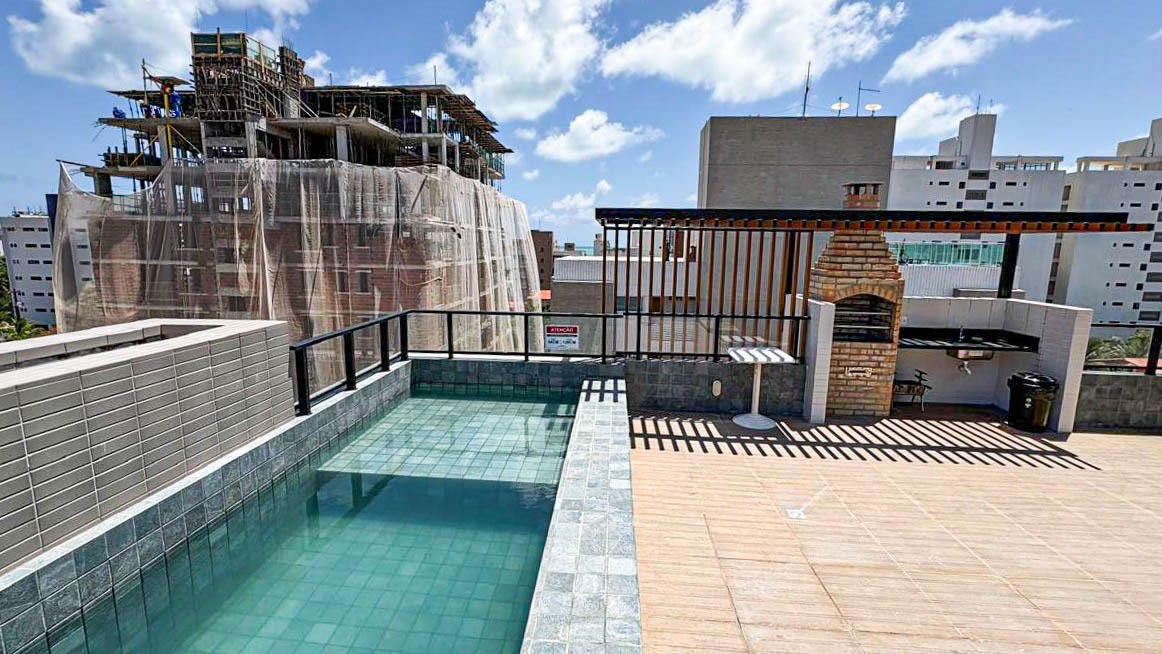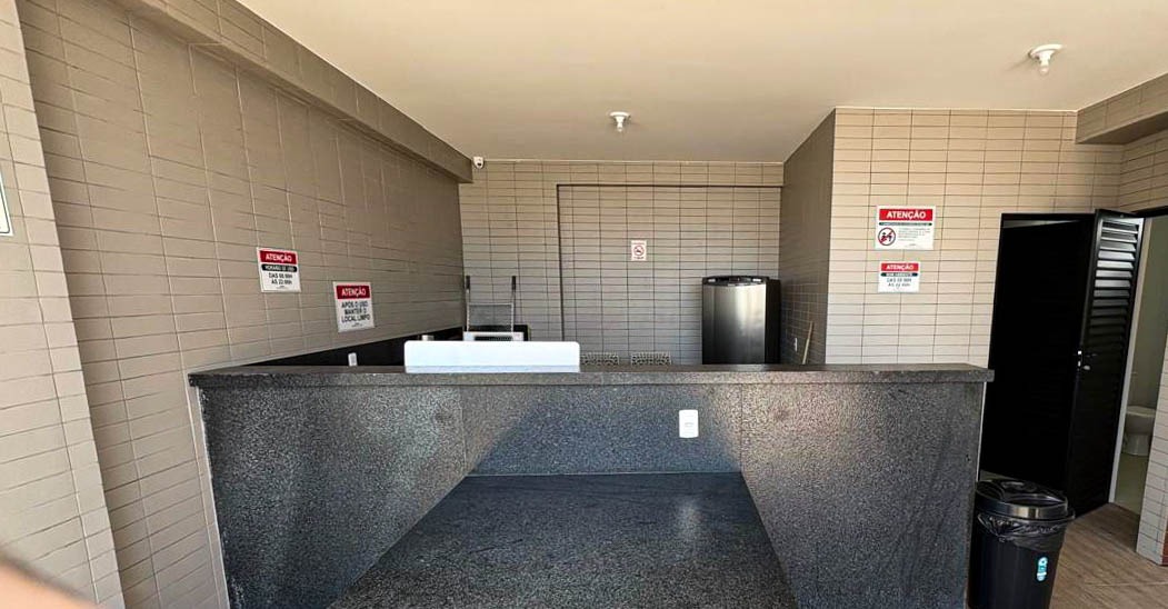 > Área de lazer com piscina, churrasqueira e espaço gourmet;