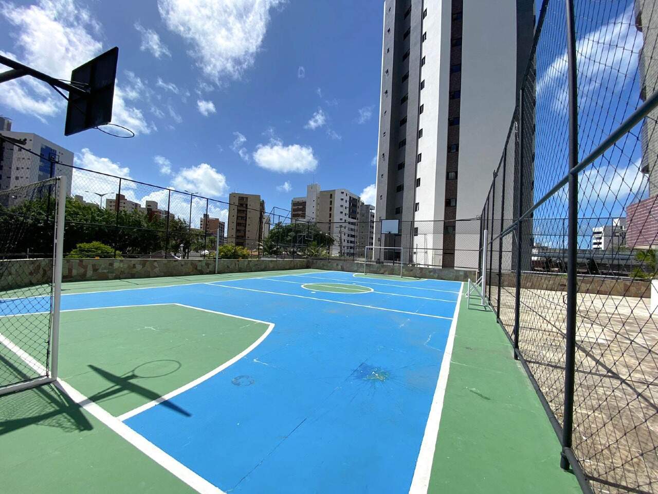 > Prédio com piscina, churrasqueira, quadra poliesportiva, salão de festas e academia;