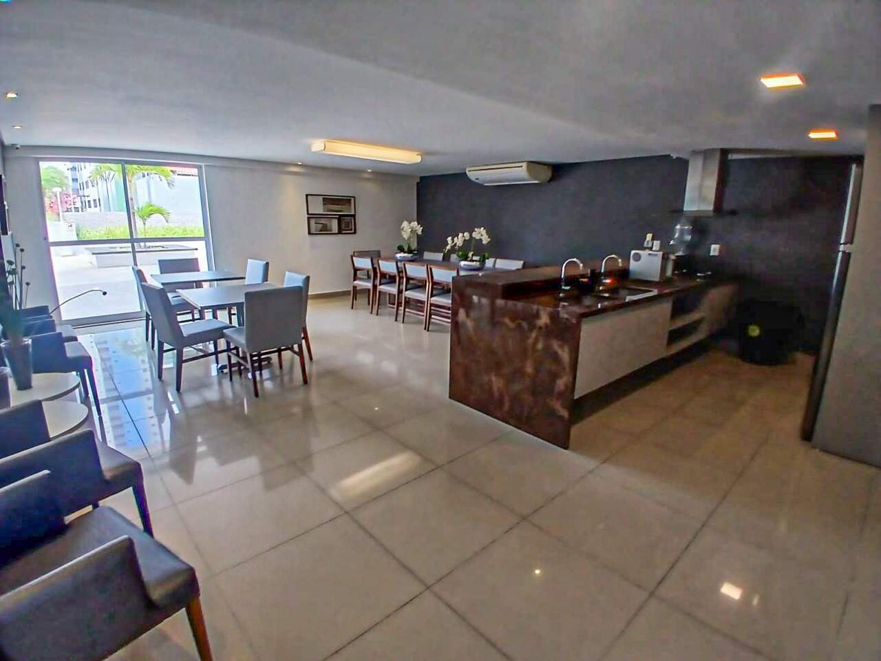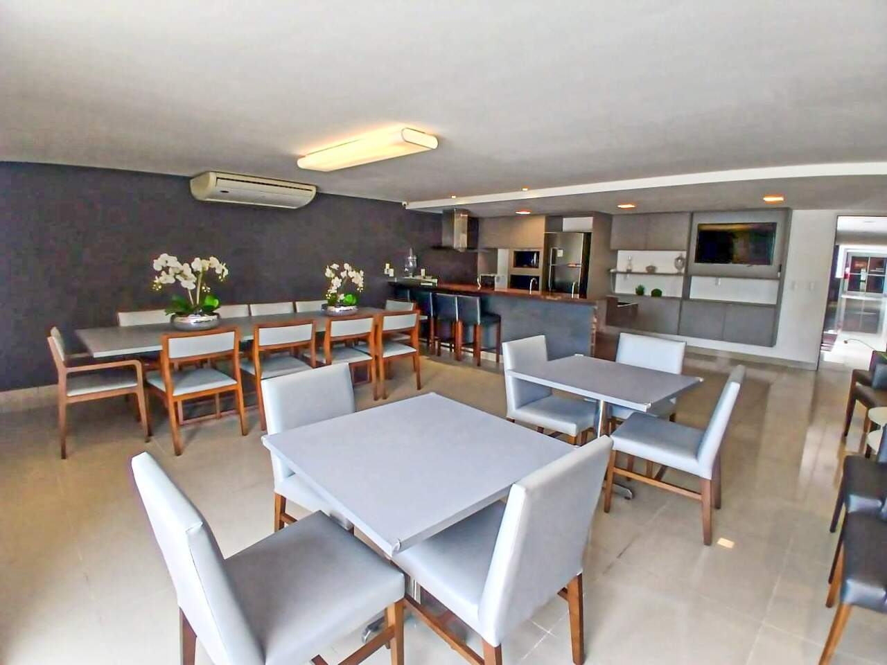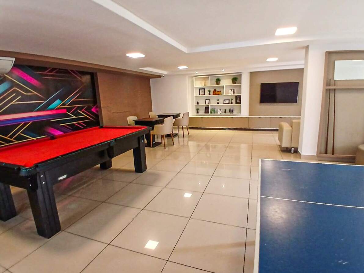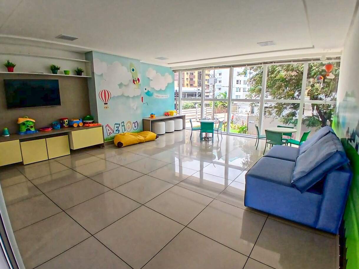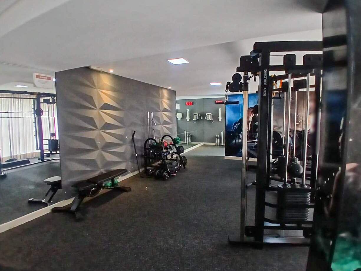 > Academia, quadra poliesportiva, playground, brinquedoteca, salão de jogos e salão de festa;