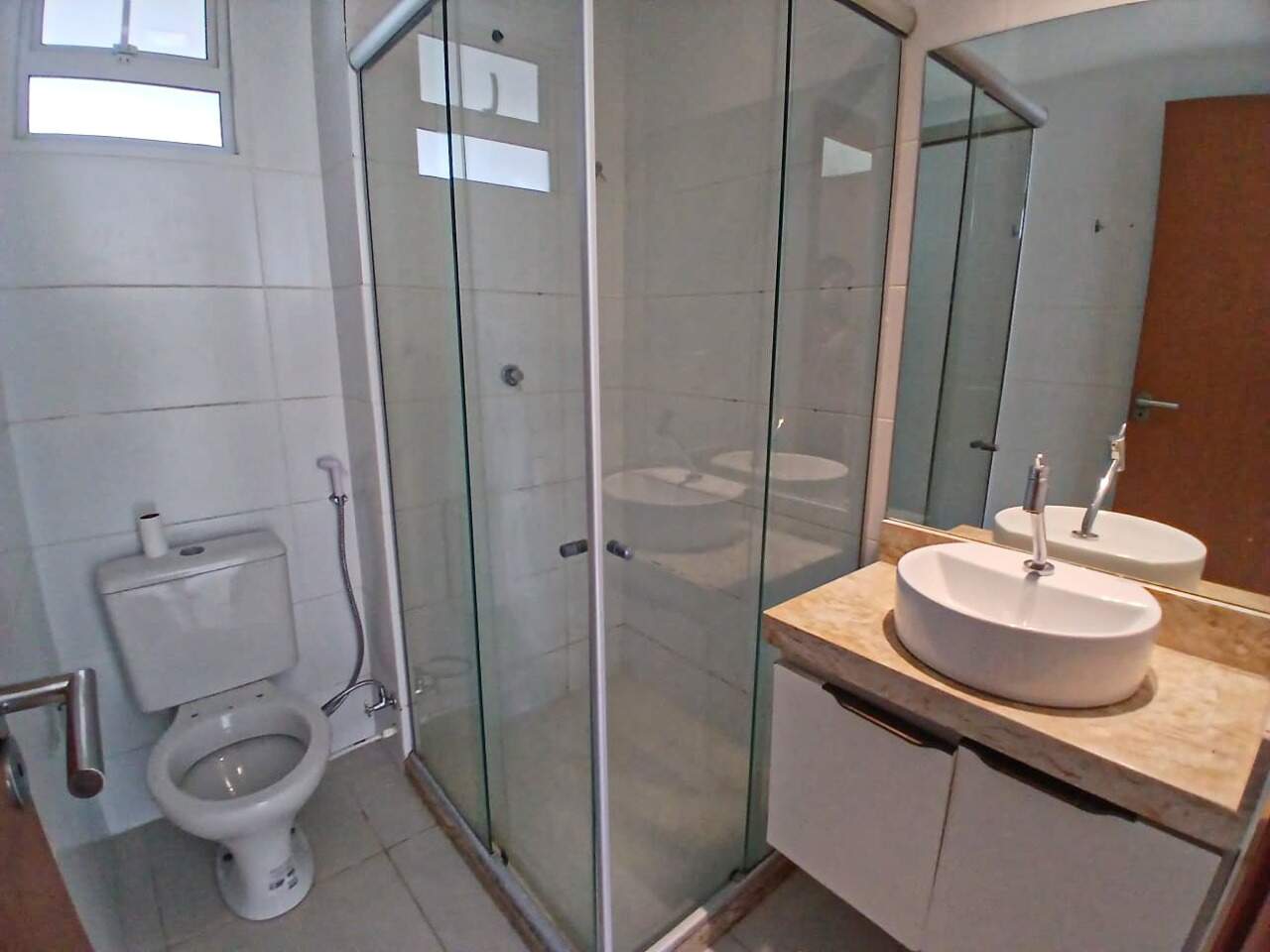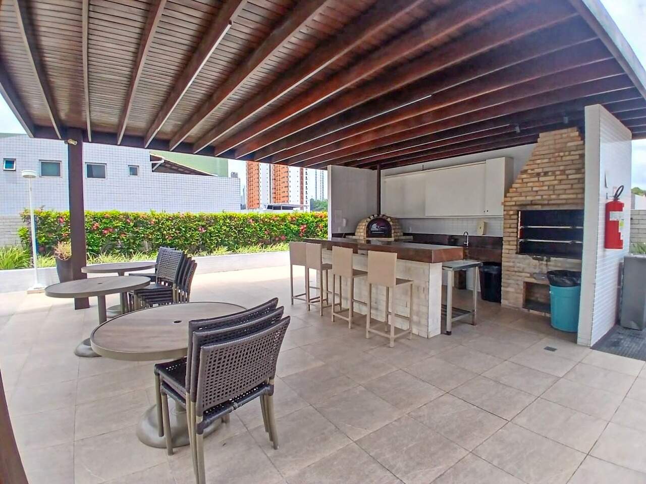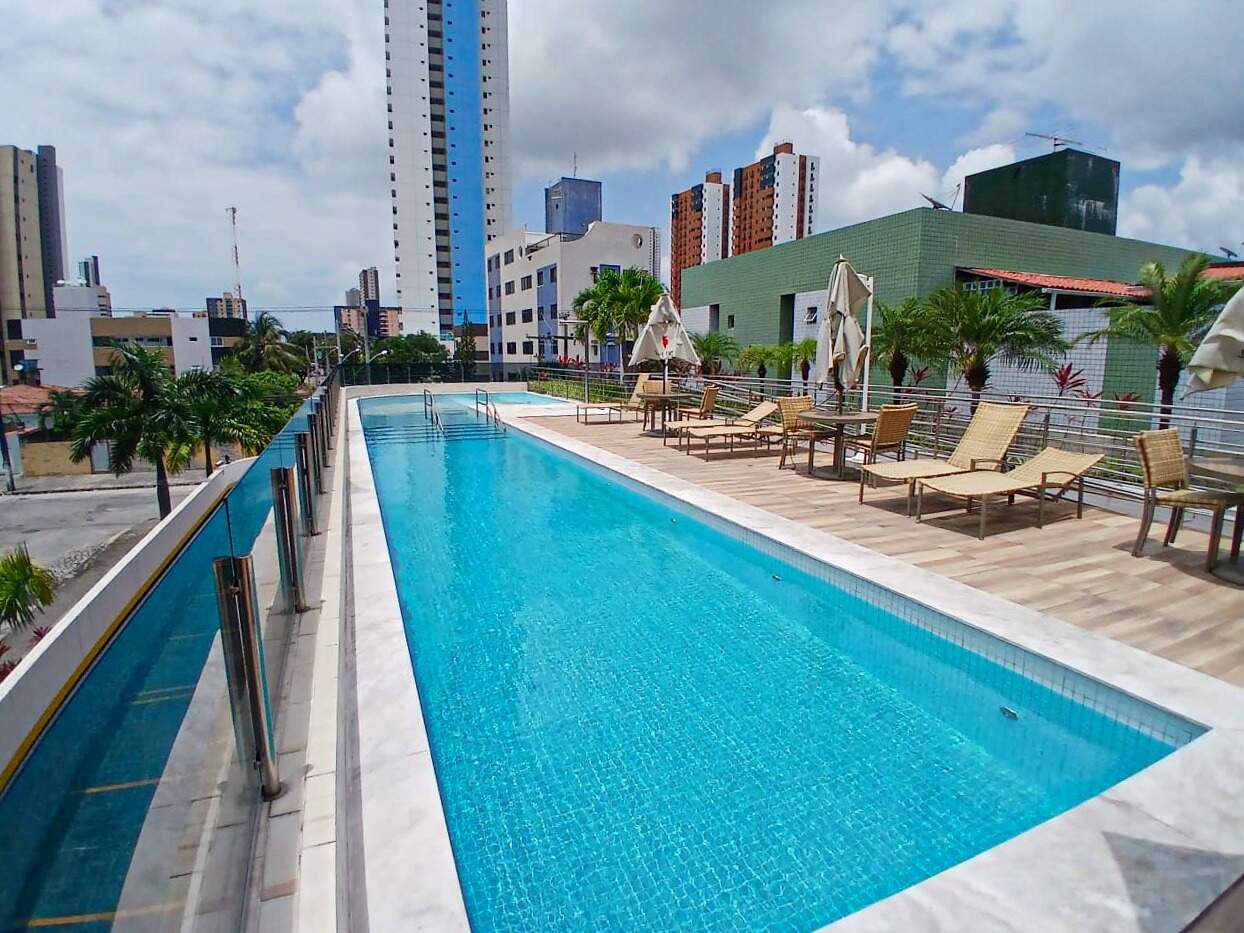 > Área de lazer com piscina e churrasqueira;