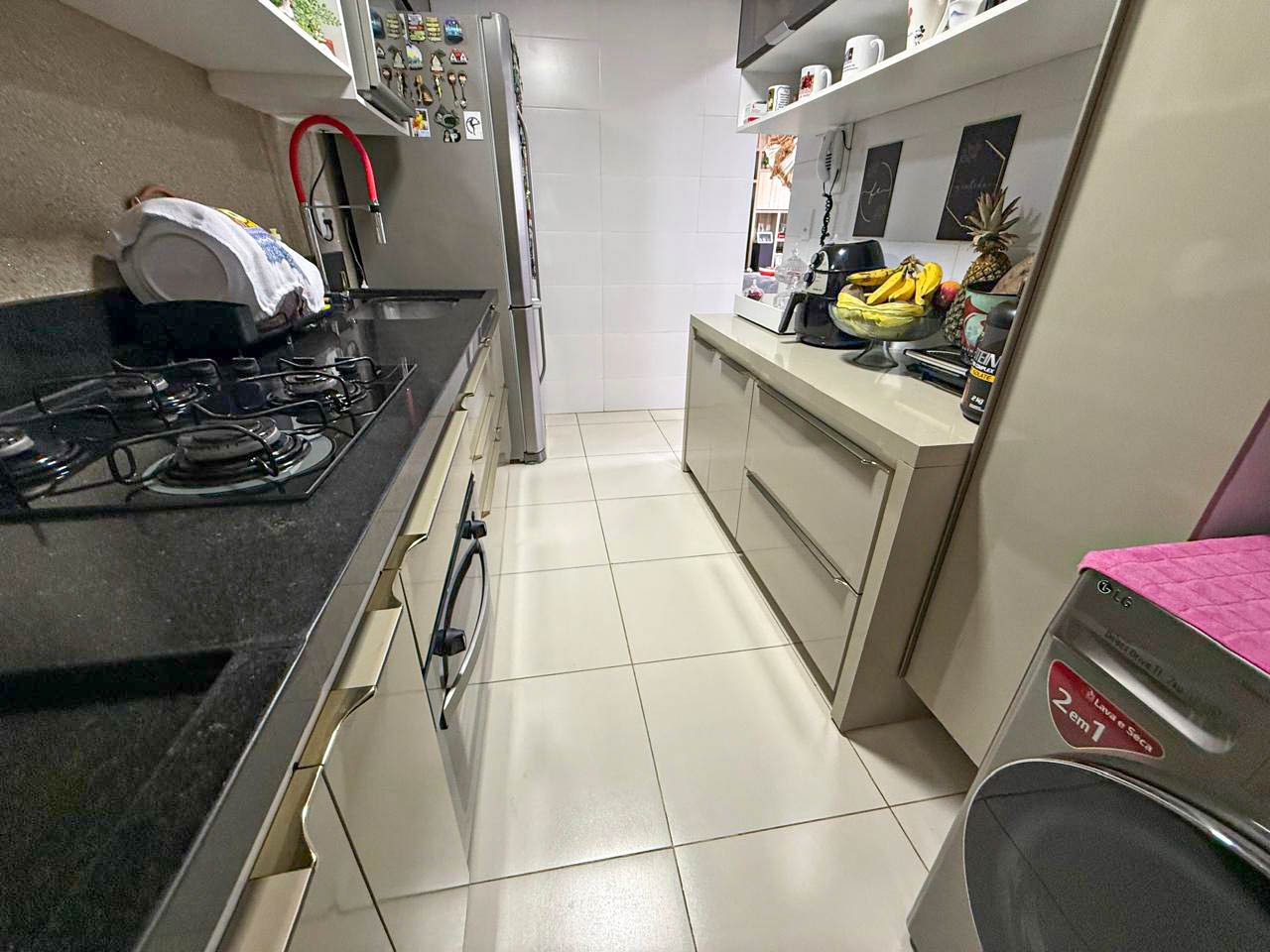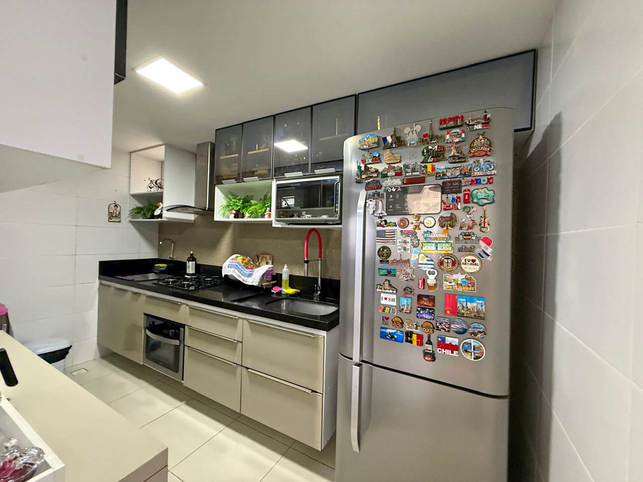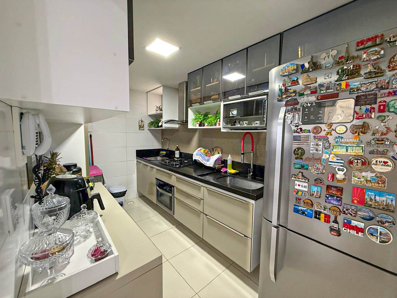 Sala ampla para dois ambientes, varanda charmosa, cozinha bem distribuída, três quartos com suíte e banheiro social, oferecendo conforto e boa funcionalidade.