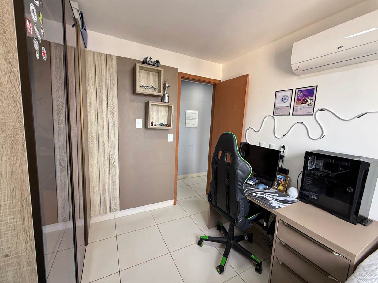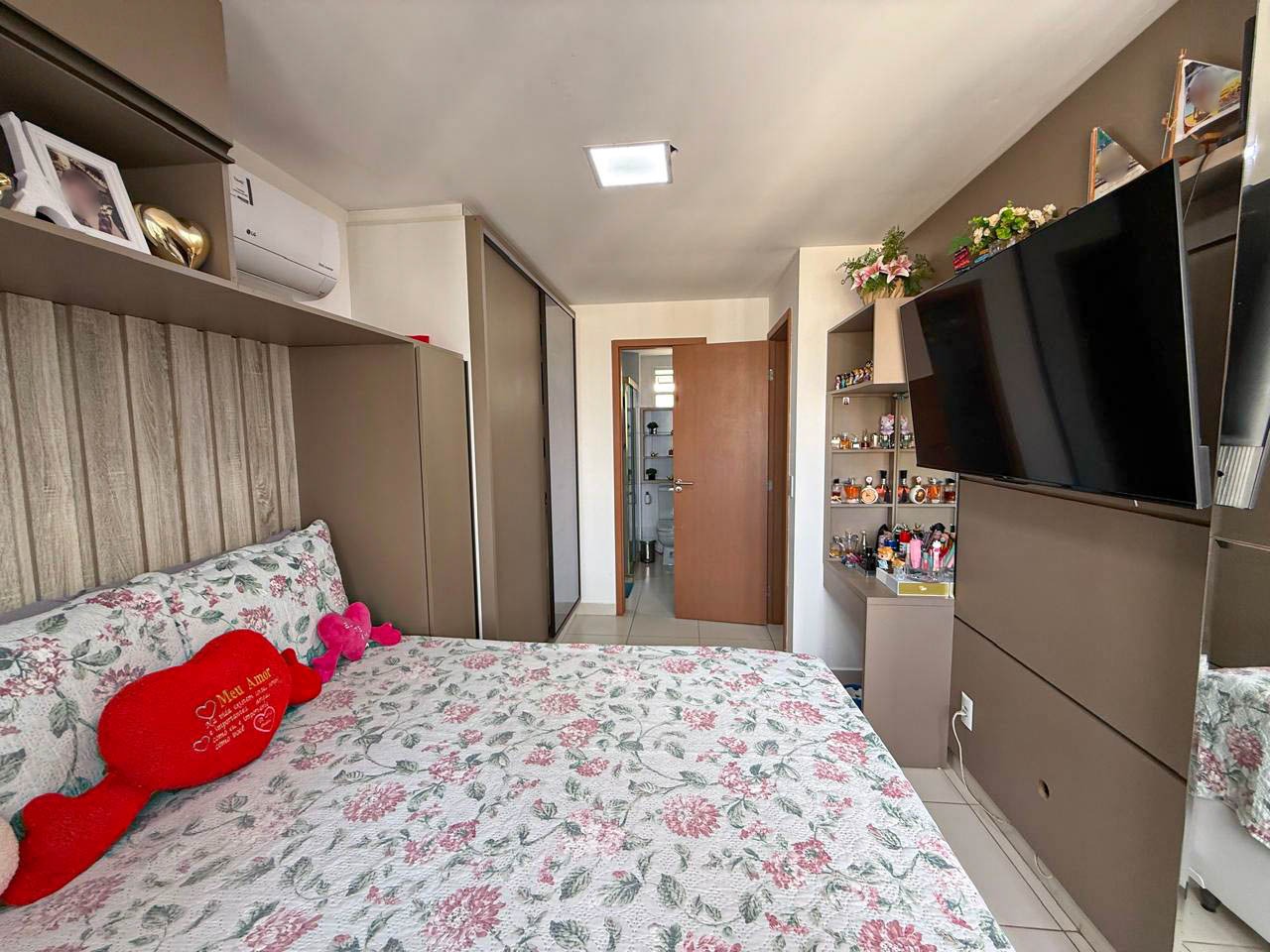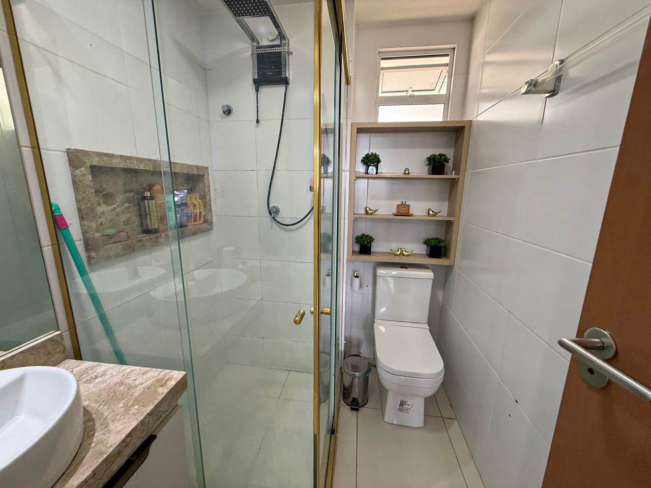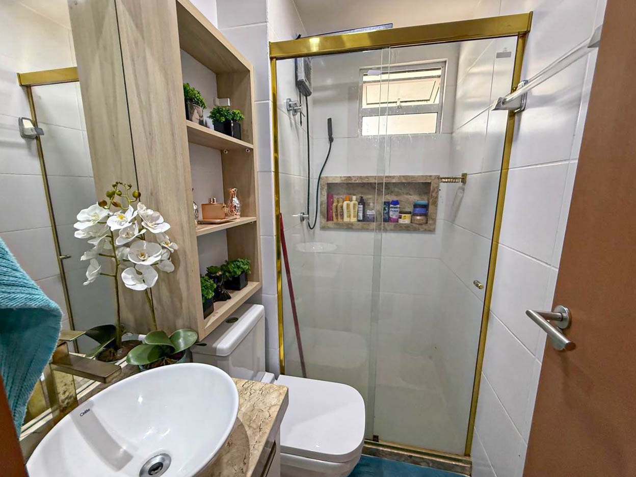 Sala ampla para dois ambientes, varanda charmosa, cozinha bem distribuída, três quartos com suíte e banheiro social, oferecendo conforto e boa funcionalidade.