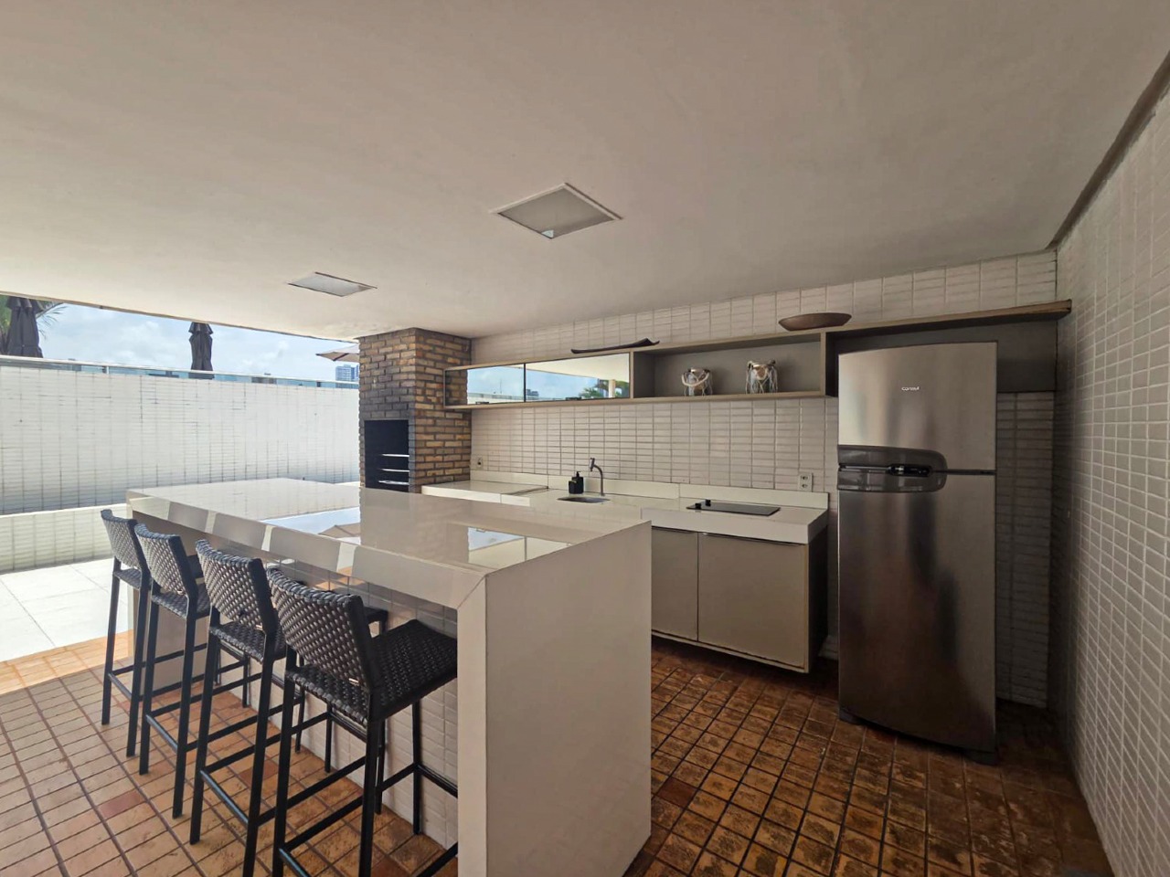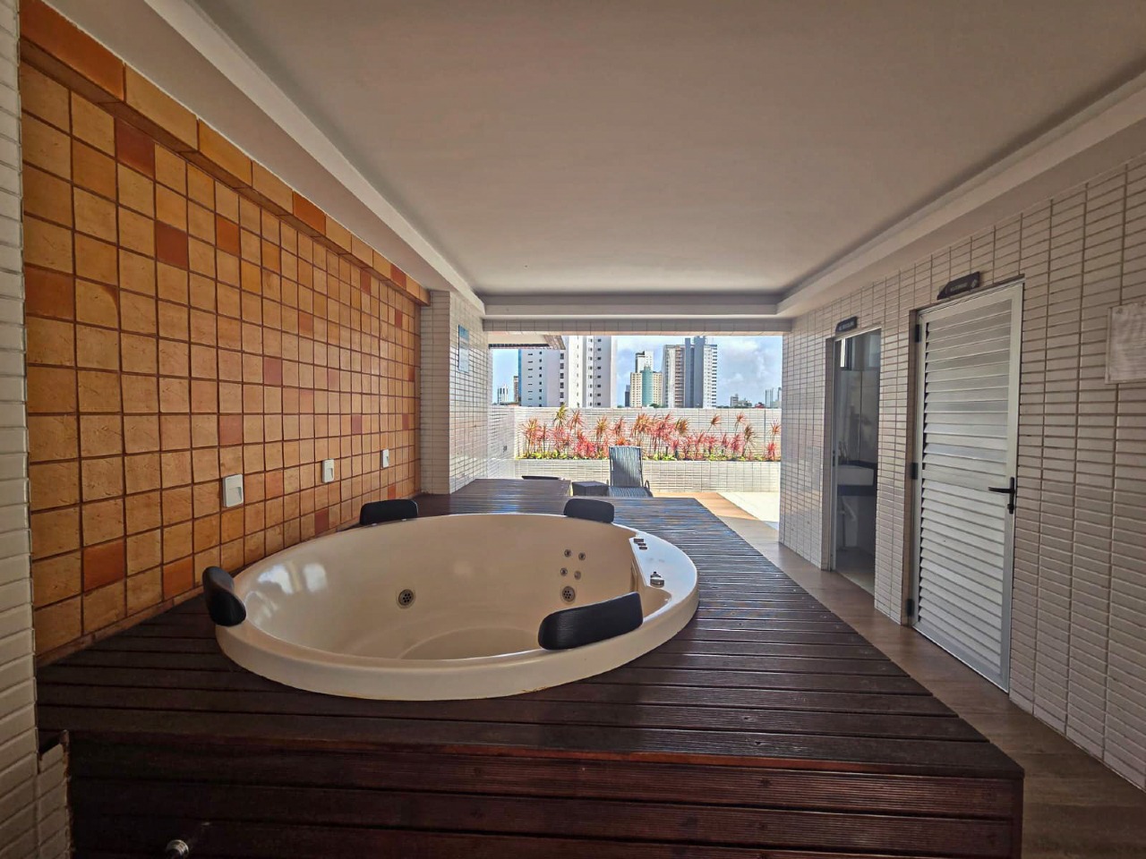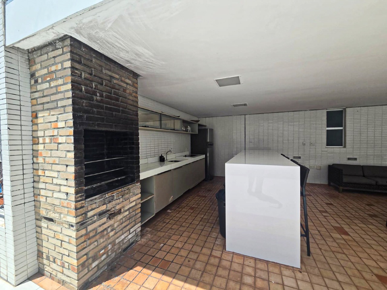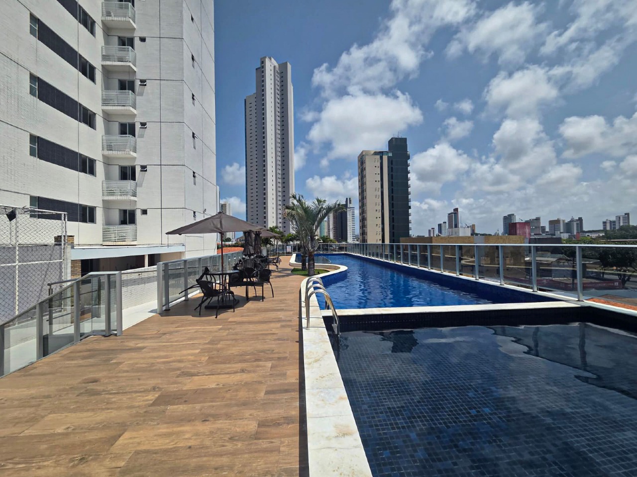 > Área de lazer com piscina e churrasqueira;