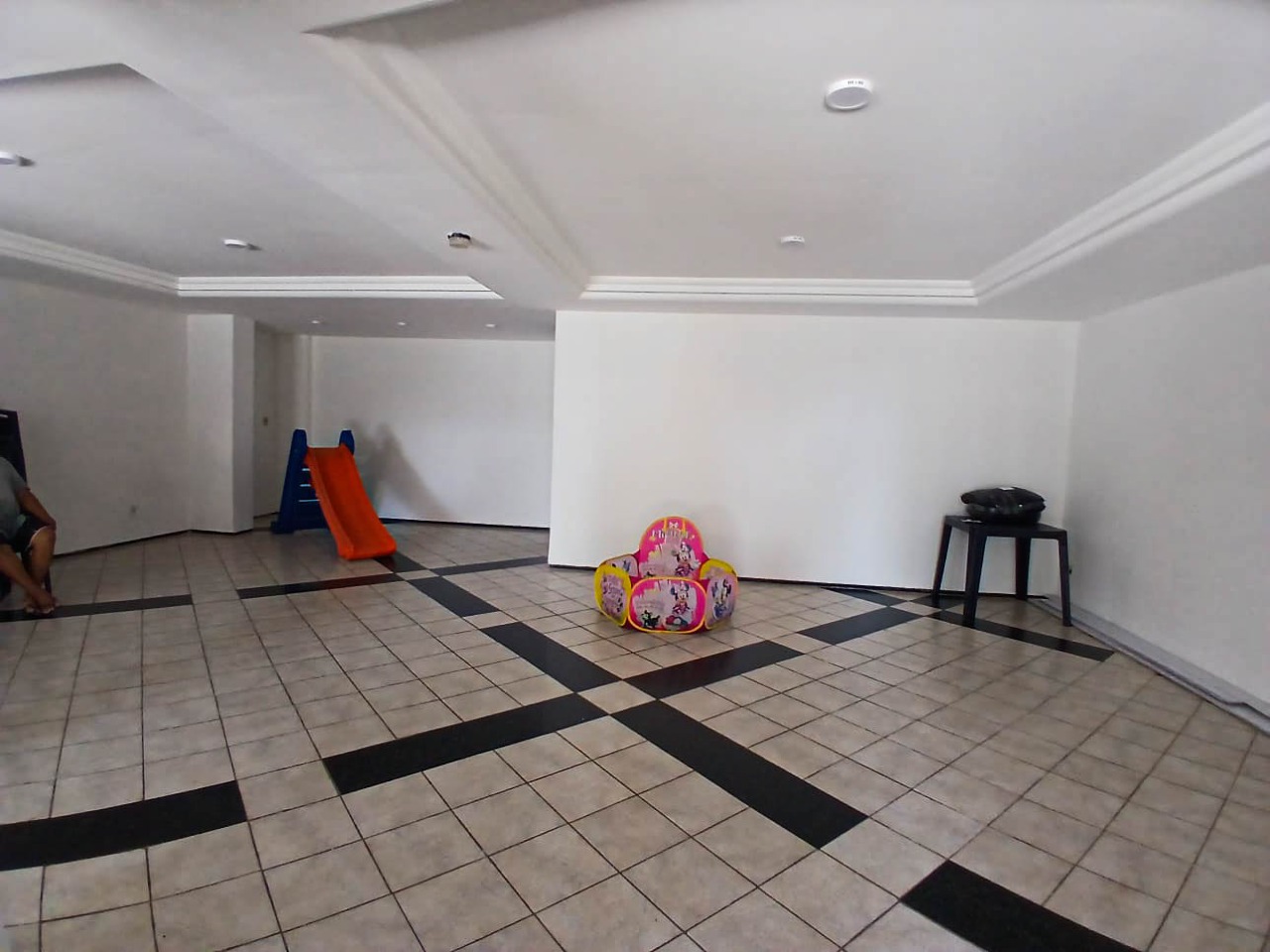 > Área de lazer com piscina, churrasqueira e salão de festas;