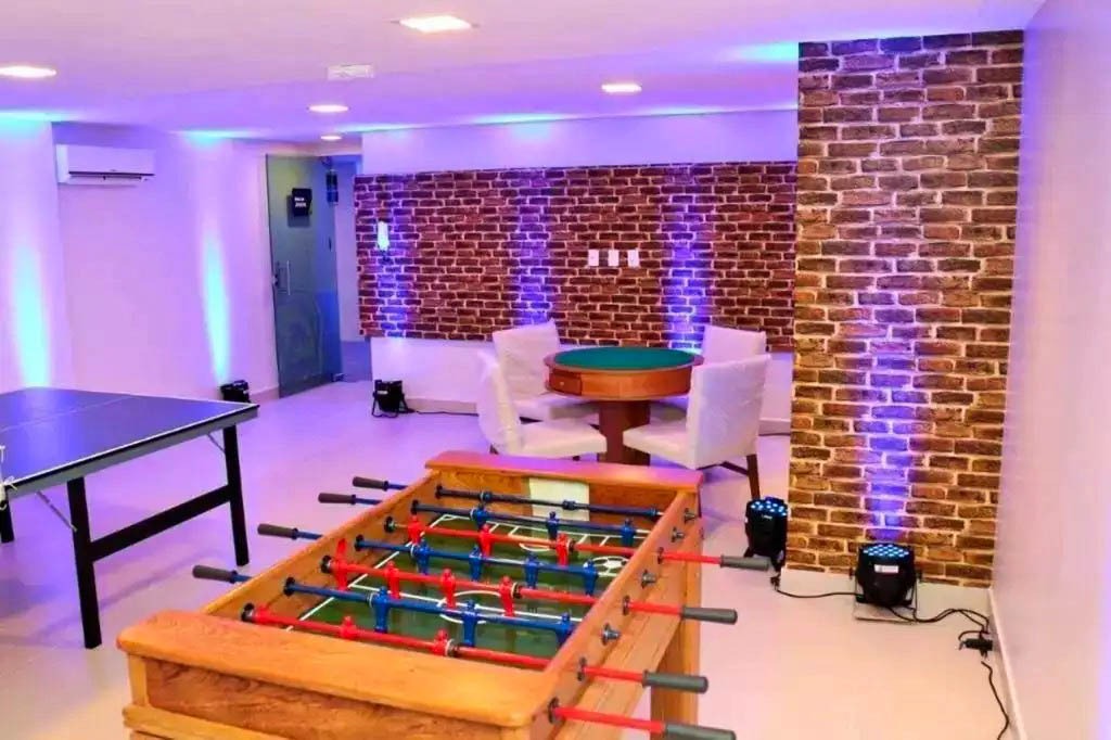 > Área de lazer com piscina e espaço gourmet com churrasqueira;