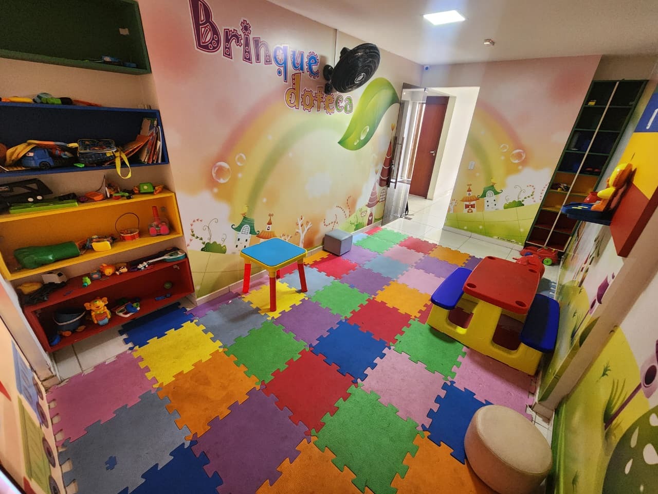 > Prédio com piscina, espaço gourmet, churrasqueira, quadra esportiva, brinquedoteca, academia, playground, salão de festas e mini market;