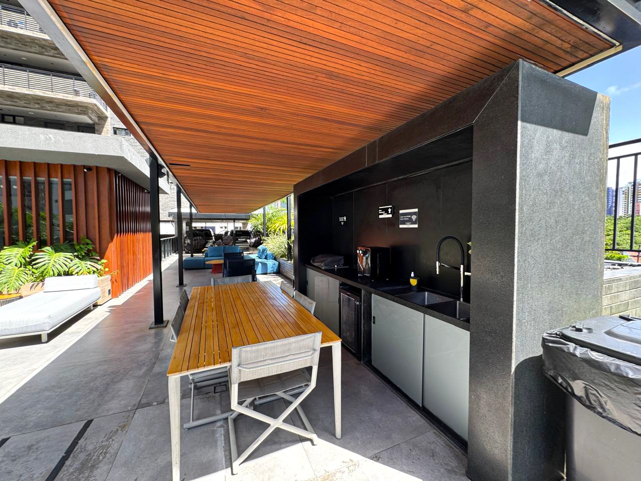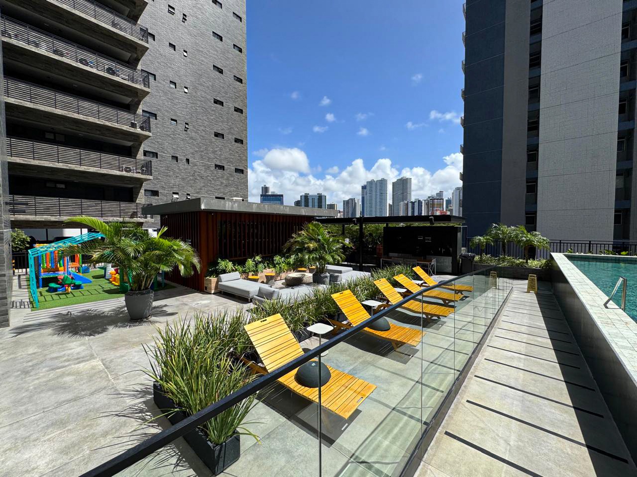 > Área de lazer com piscina, churrasqueira, sauna e espaço gourmet;