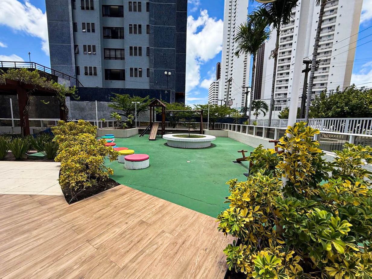> Academia, salão de festas, sala de jogos, quadra poliesportiva e playground;