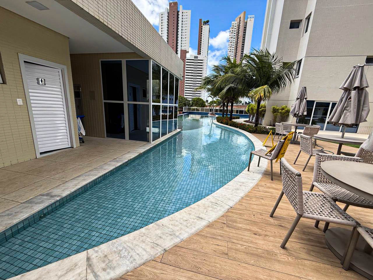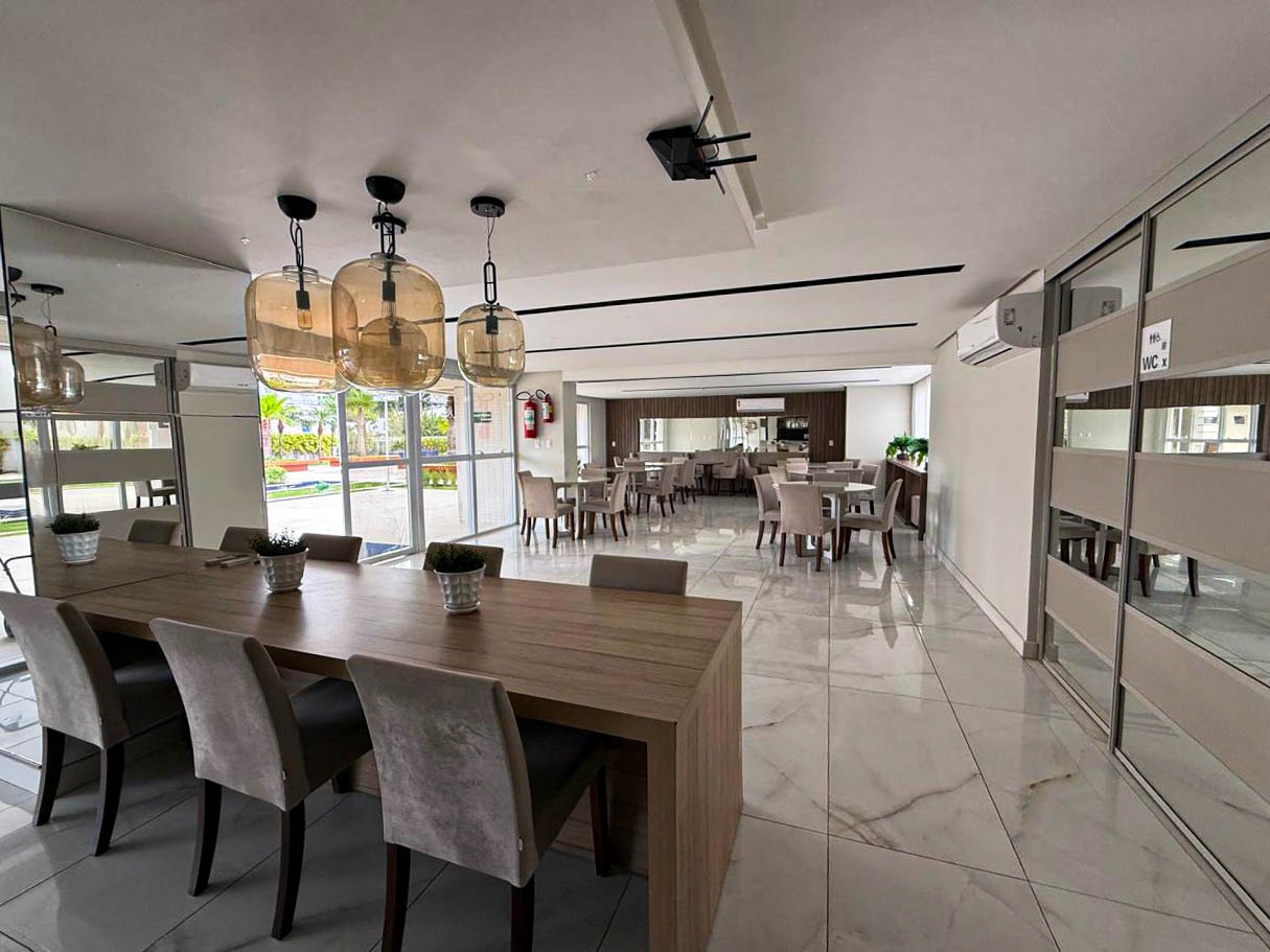 > Área de lazer com piscina, churrasqueira e espaço gourmet;