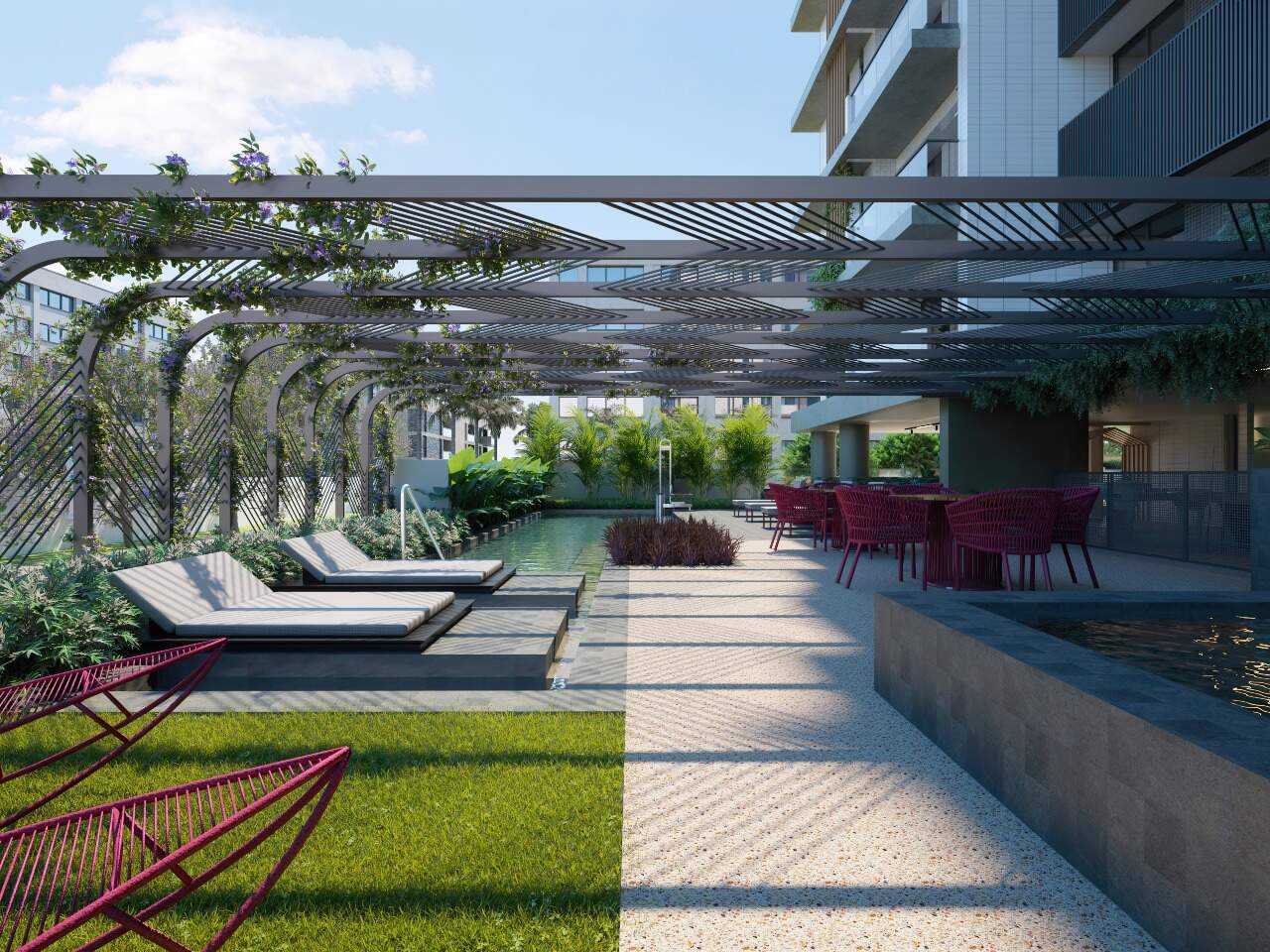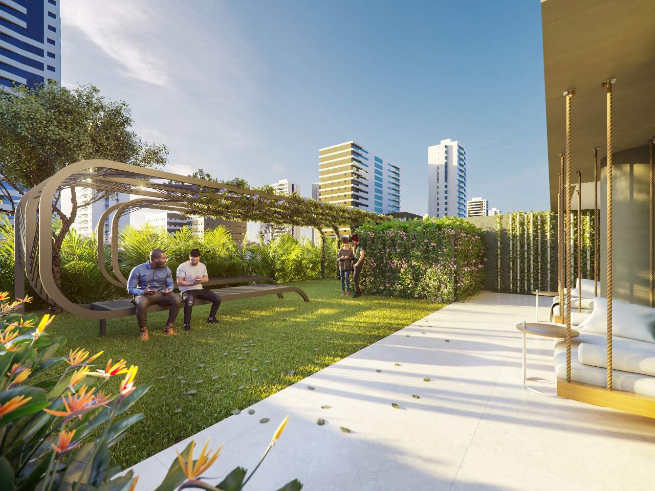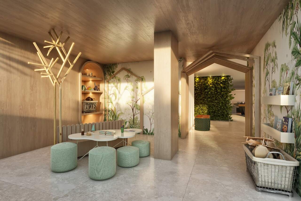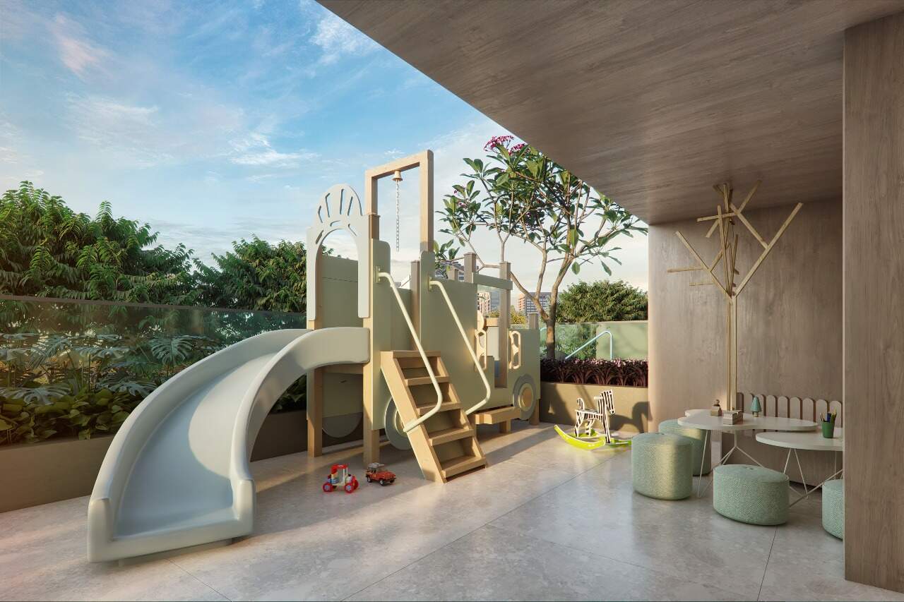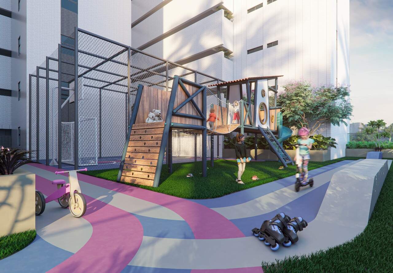 > Prédio com piscina, pet place, cinema, espaço gourmet, salão de festas, delivery, brinquedoteca, playground, terraço gourmet, wine bar, salão de jogos, garden lounge, sala de leitura e espaço barbecue;