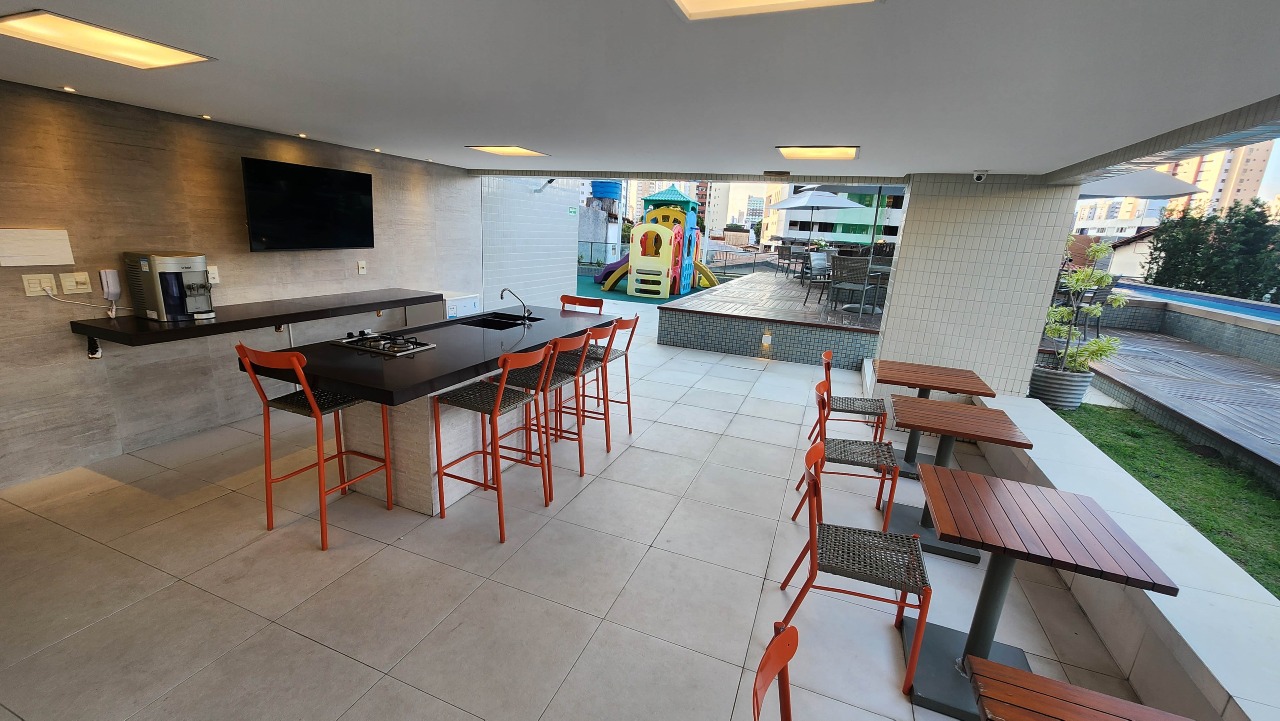Este apartamento conta com sala ampla para dois ambientes, varanda, cozinha com área de serviço integrada, DCE, três quartos, sendo duas suítes e banheiro social.