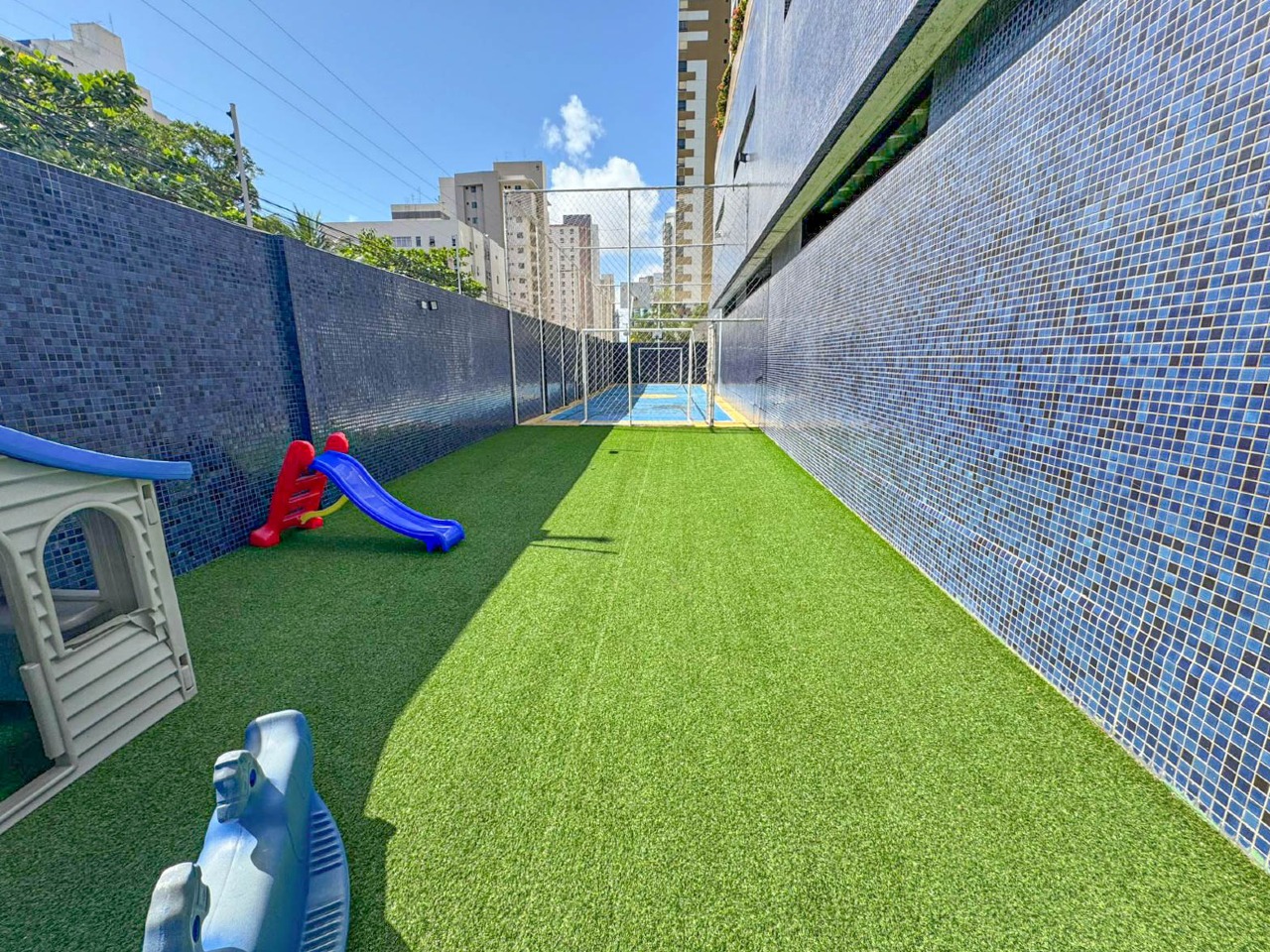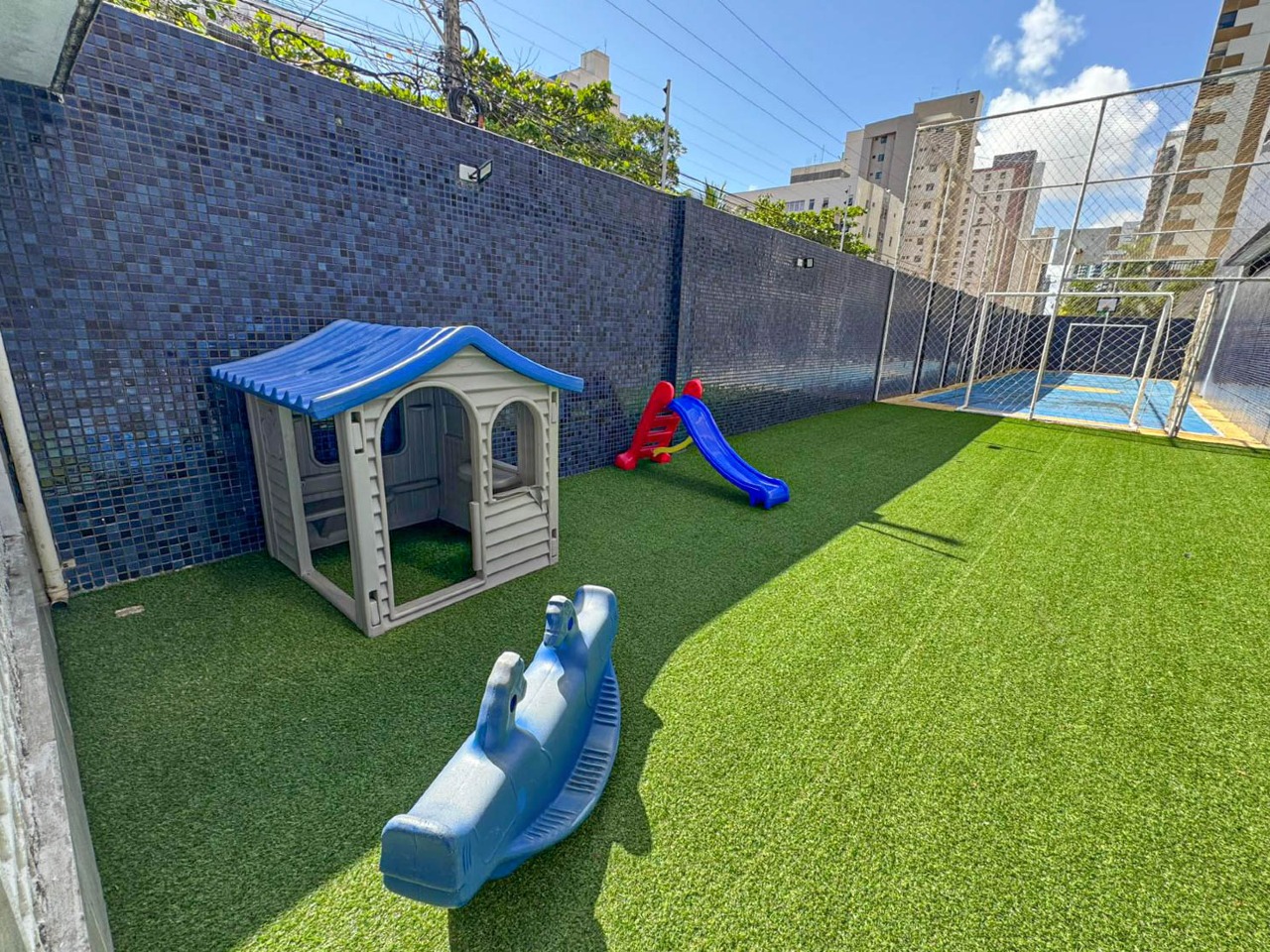 > Academia, quadra poliesportiva e salão de festas;