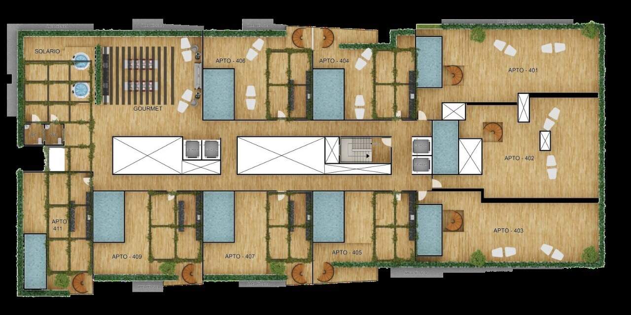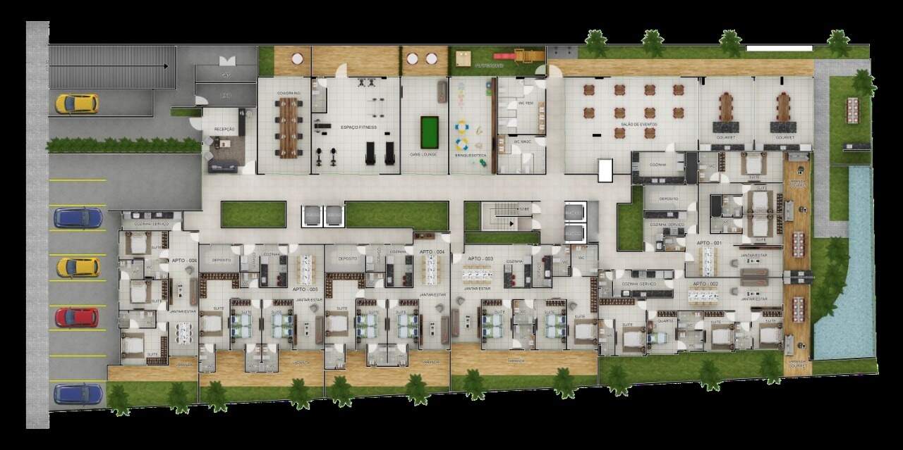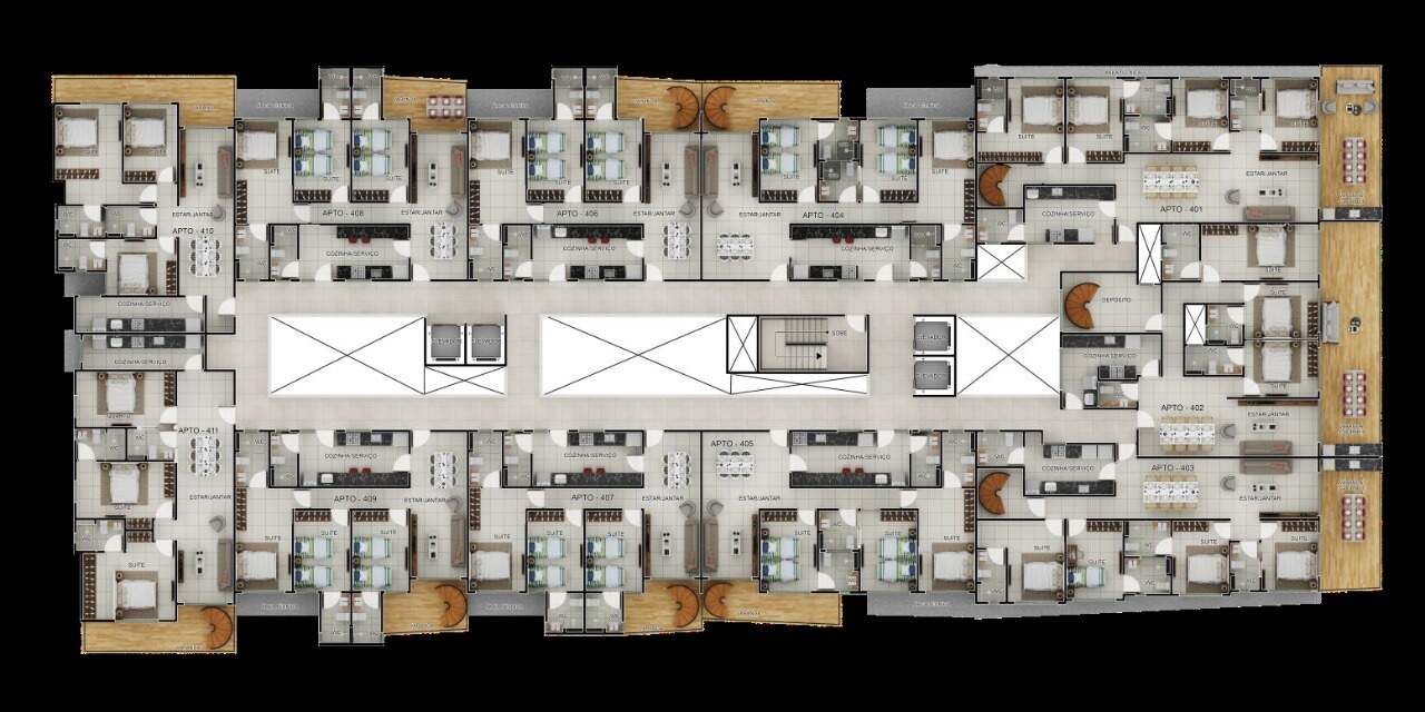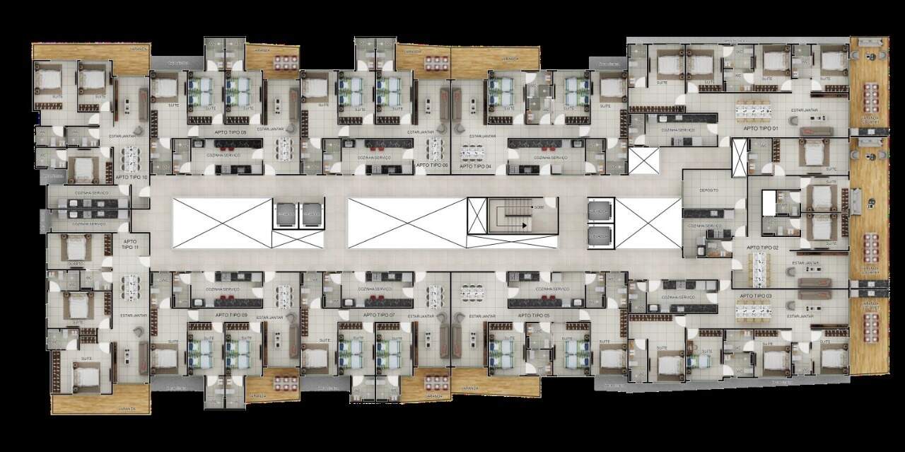 Escolha o seu apartamento com opções de planta entre 100 m² a 297 m², com 3 quartos, sendo 3 suítes, com sala, cozinha, varanda, área de serviço, elevador e 2 a 4 vagas de garagem.