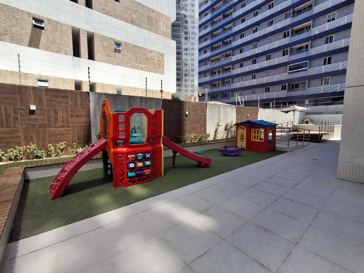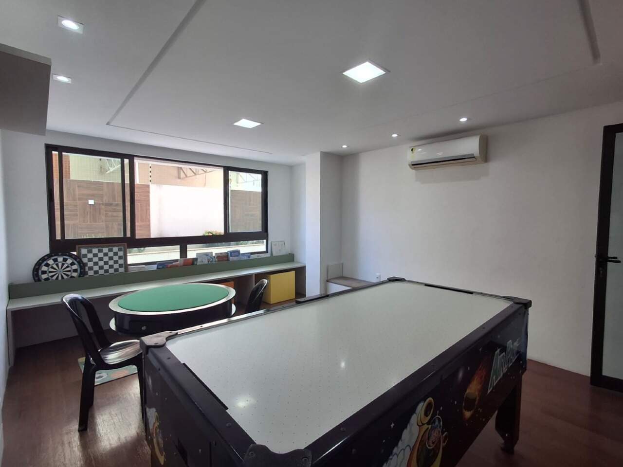 Esse apê conta com sala ampla em L para até dois ambientes, varanda gourmet com uma vista incrível, lavabo, cozinha com área de serviço separada e com 3 suítes para garantir privacidade. Além disso o empreendimento conta com piscina, academia, salão de festas, salão de jogos, churrasqueira e playground. Demais características;