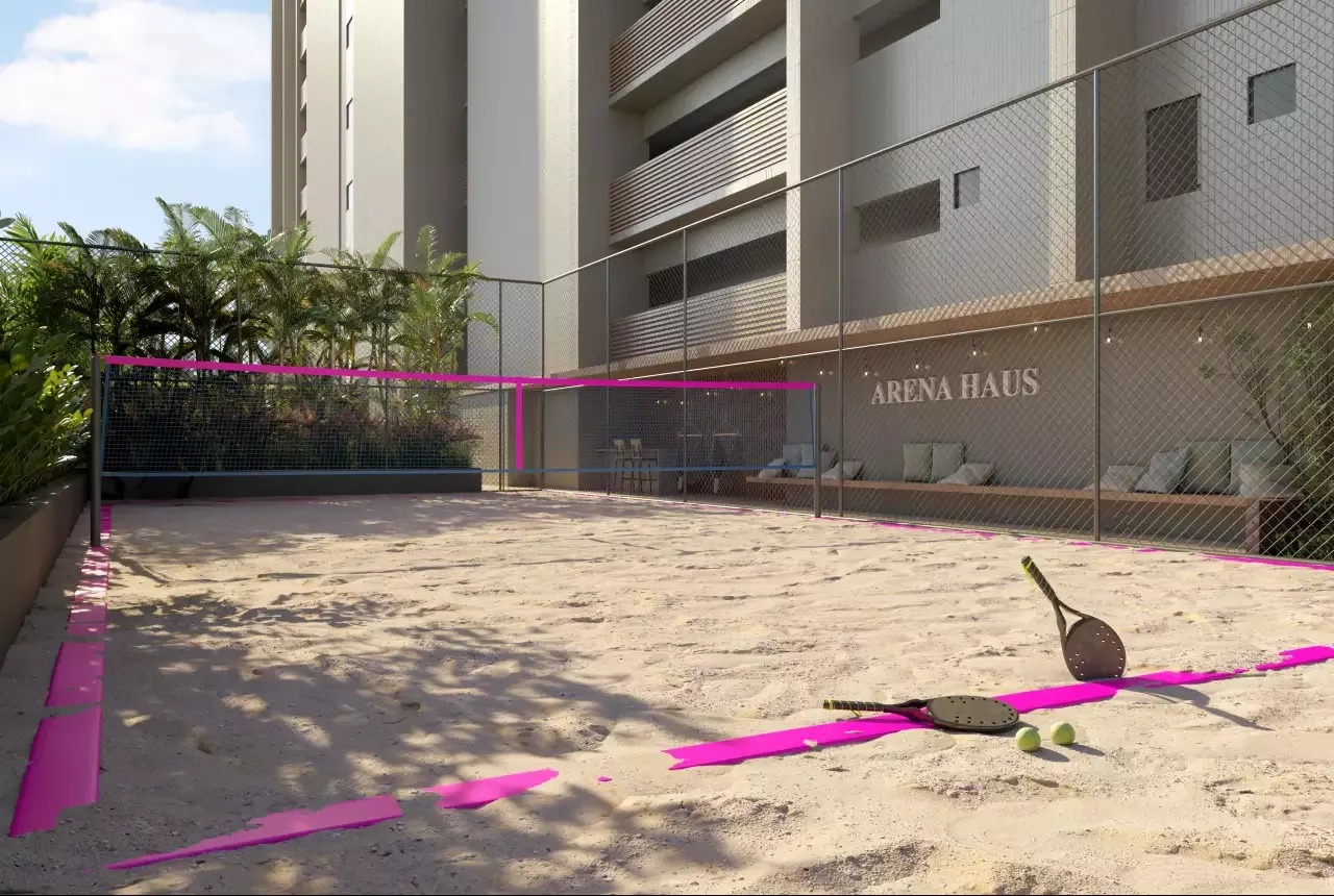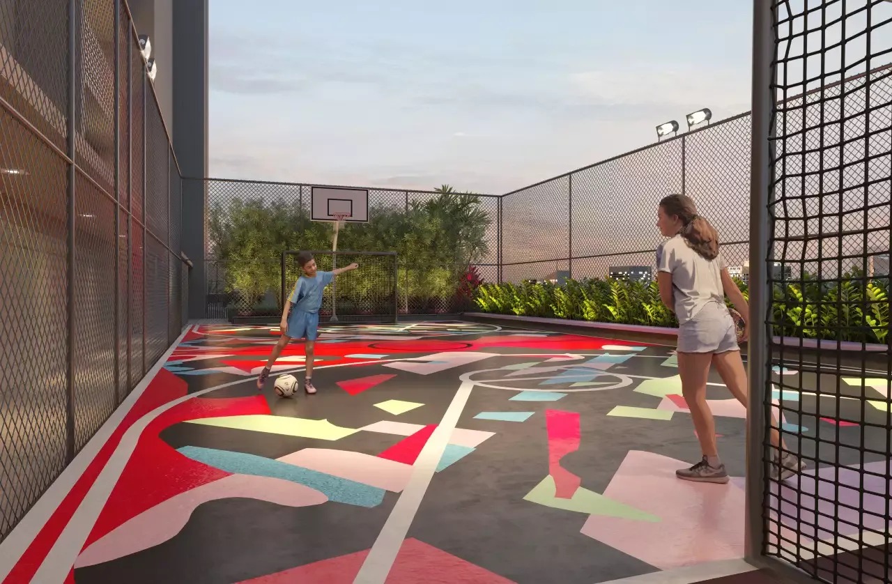 > Academia, home cine, sala de jogos, salão de festas, quadra poliesportiva e playground;