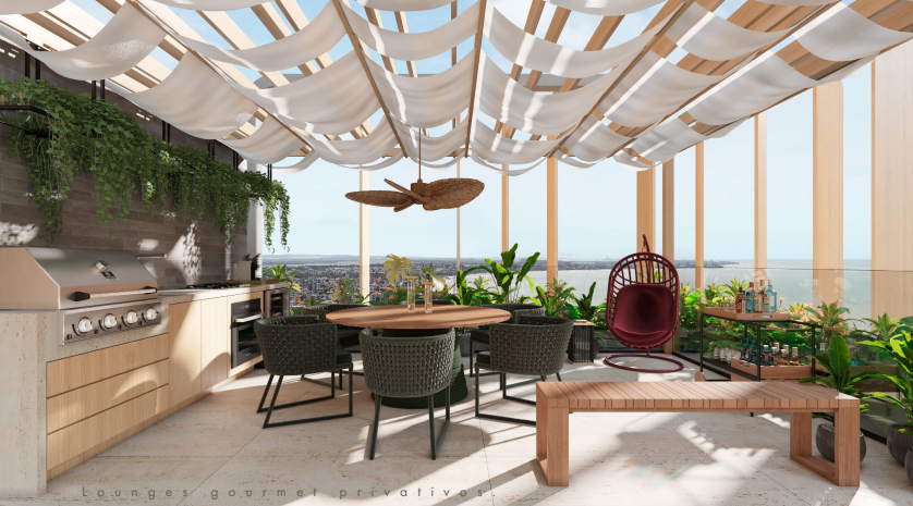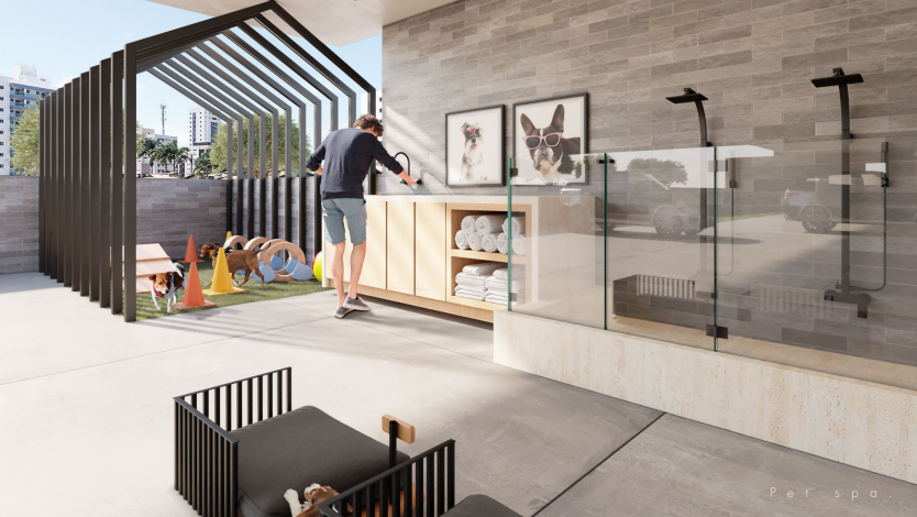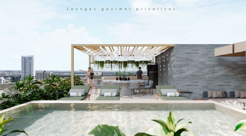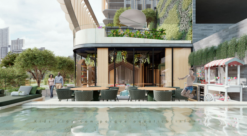 > Prédio com 4 piscinas, espaço gourmet, churrasqueira, mini mercado, delivery hub, car wash, coworking, pet spa, hidromassagem, salão de festas, sauna, sala de massagem, lunch gourmet, academia e crossfit, salão de jogos, brinquedoteca com parque aquatico infantil, spa com piscina aquecida;