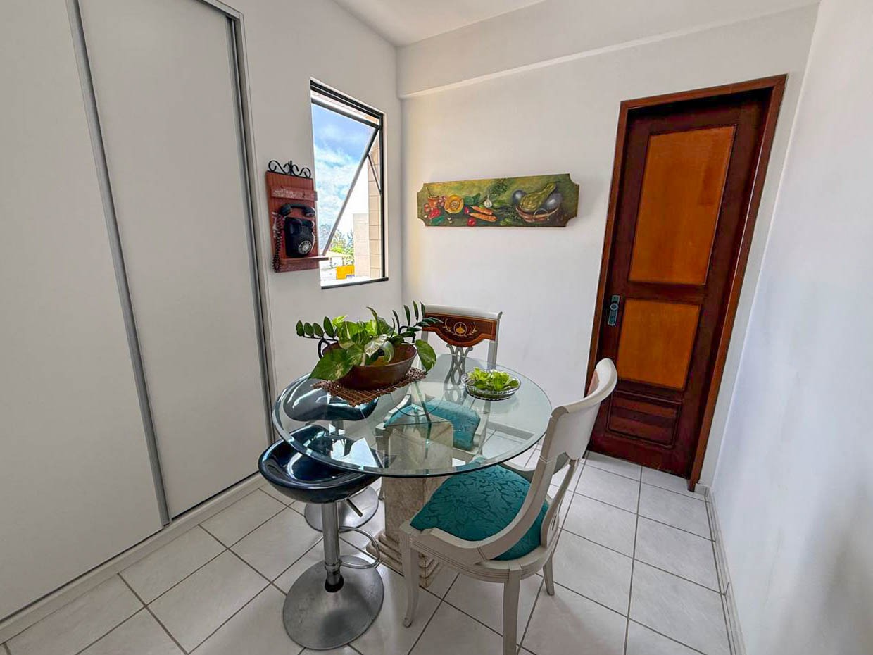 O apartamento conta com uma espaçosa sala de estar e jantar, cozinha com área de serviço integrada, três quartos, sendo duas suítes padrão e uma suíte master, possuindo duas varandas, sendo uma delas na sala de estar e outra na suíte. Além de tudo, ainda possui um banheiro social, proporcionando conforto e excelente distribuição dos ambientes internos!