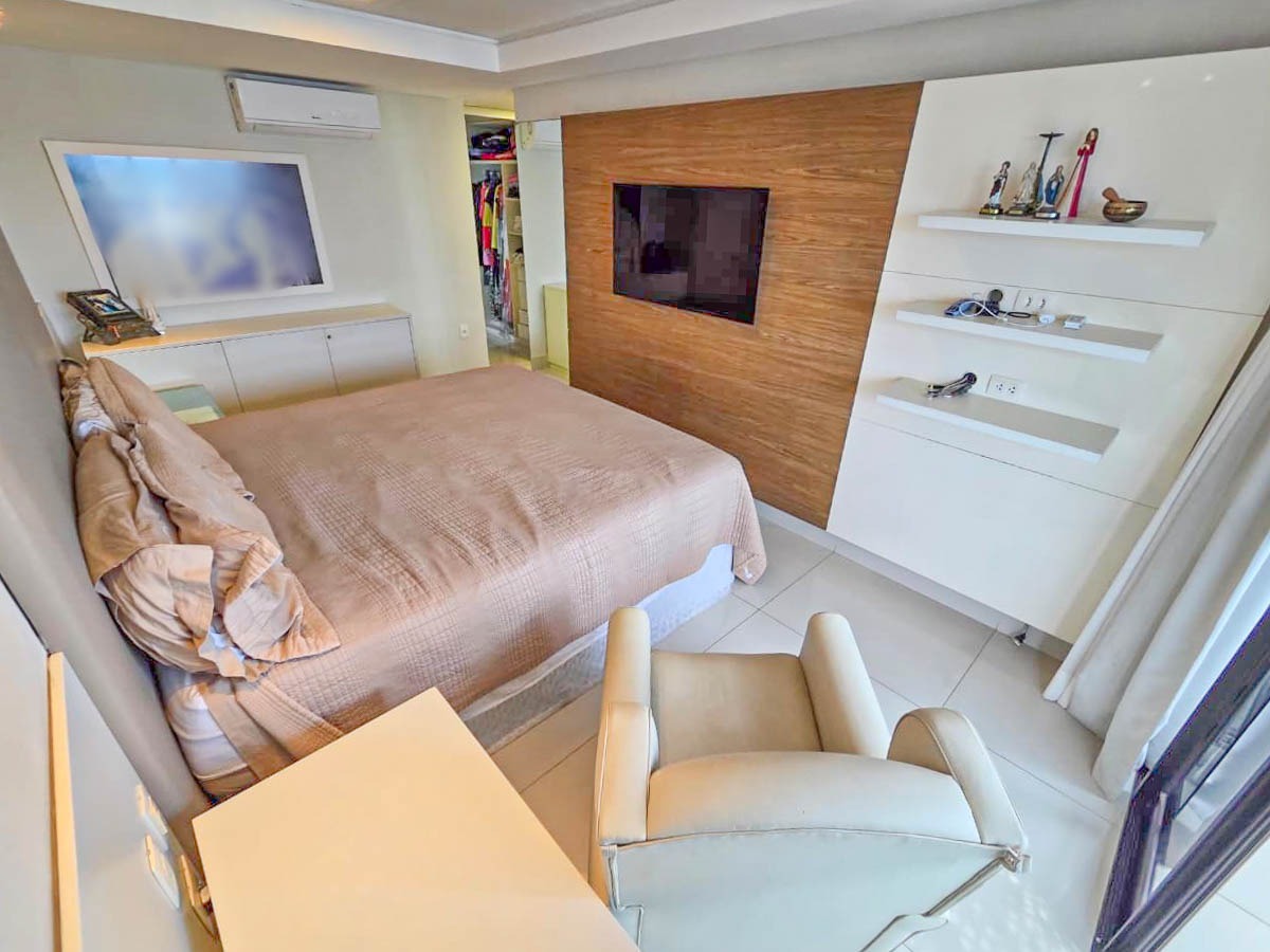 Apartamento com ampla sala de estar integrada à varanda com vista para o mar, sala de jantar, cozinha funcional com área de serviço separada, DCE, três suítes, sendo uma suíte master com varanda e closet, além de banheiro social. O imóvel oferece conforto, excelente distribuição dos ambientes e uma vista privilegiada.