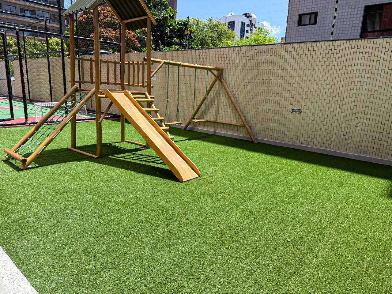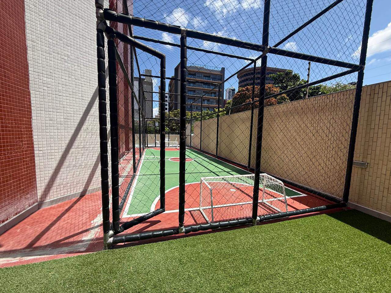 > Quadra poliesportiva e salão de festa;