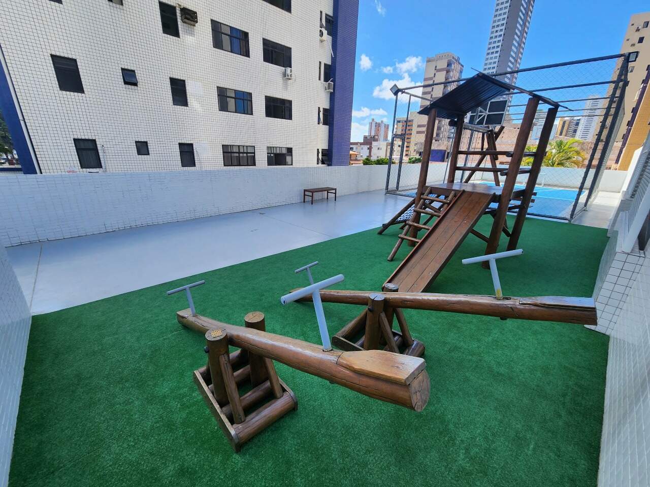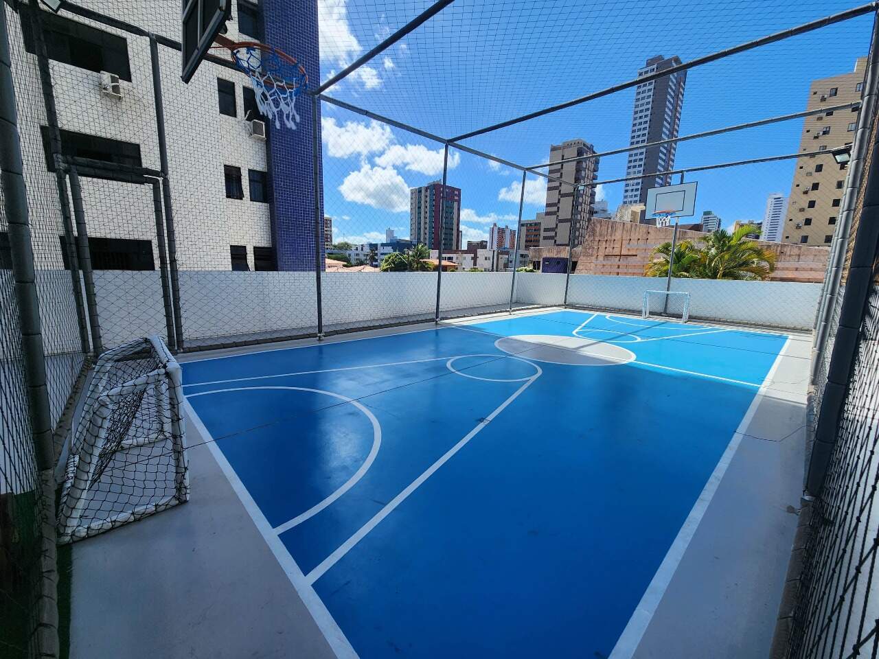 > Quadra poliesportiva e playground;