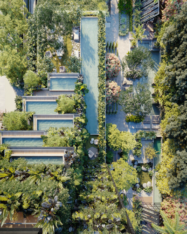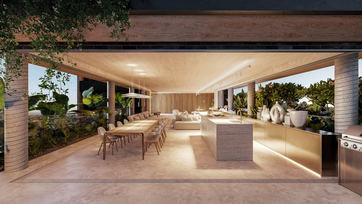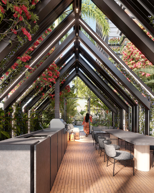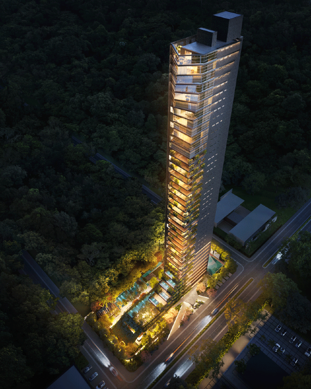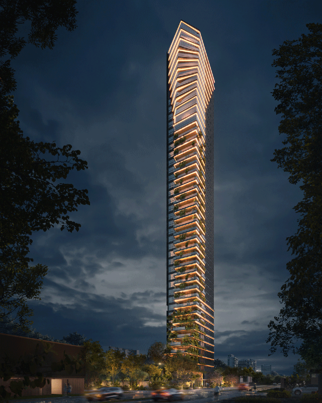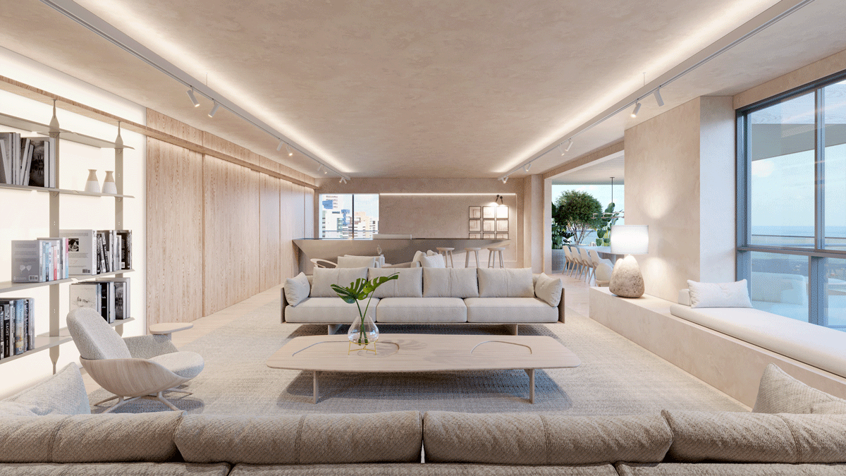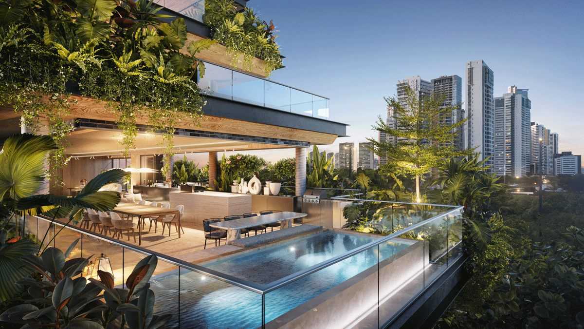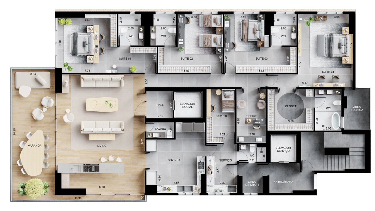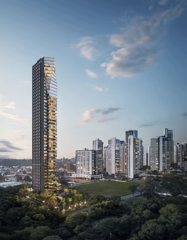Com opções de plantas diferentes, sendo; Apartamentos com 360,66m² possuindo quatro suítes e um closet, banheiro social, sala de estar/jantar, escritório, cozinha com área de serviço, DCE, living, área gourmet e piscina privativos.
