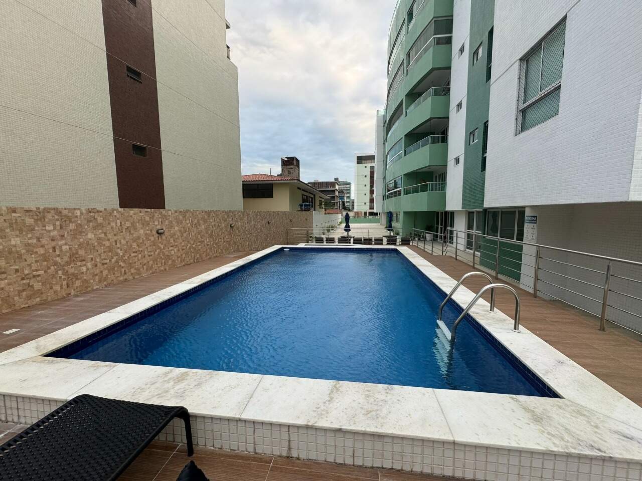 > Prédio com piscina, salão de jogos, salão de festas e academia;
