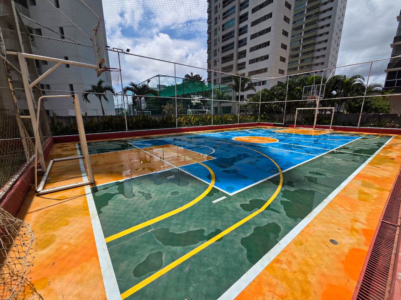 > Academia, home cinema, salão de festas, sala de jogos, quadra poliesportiva e quadra de tênis;