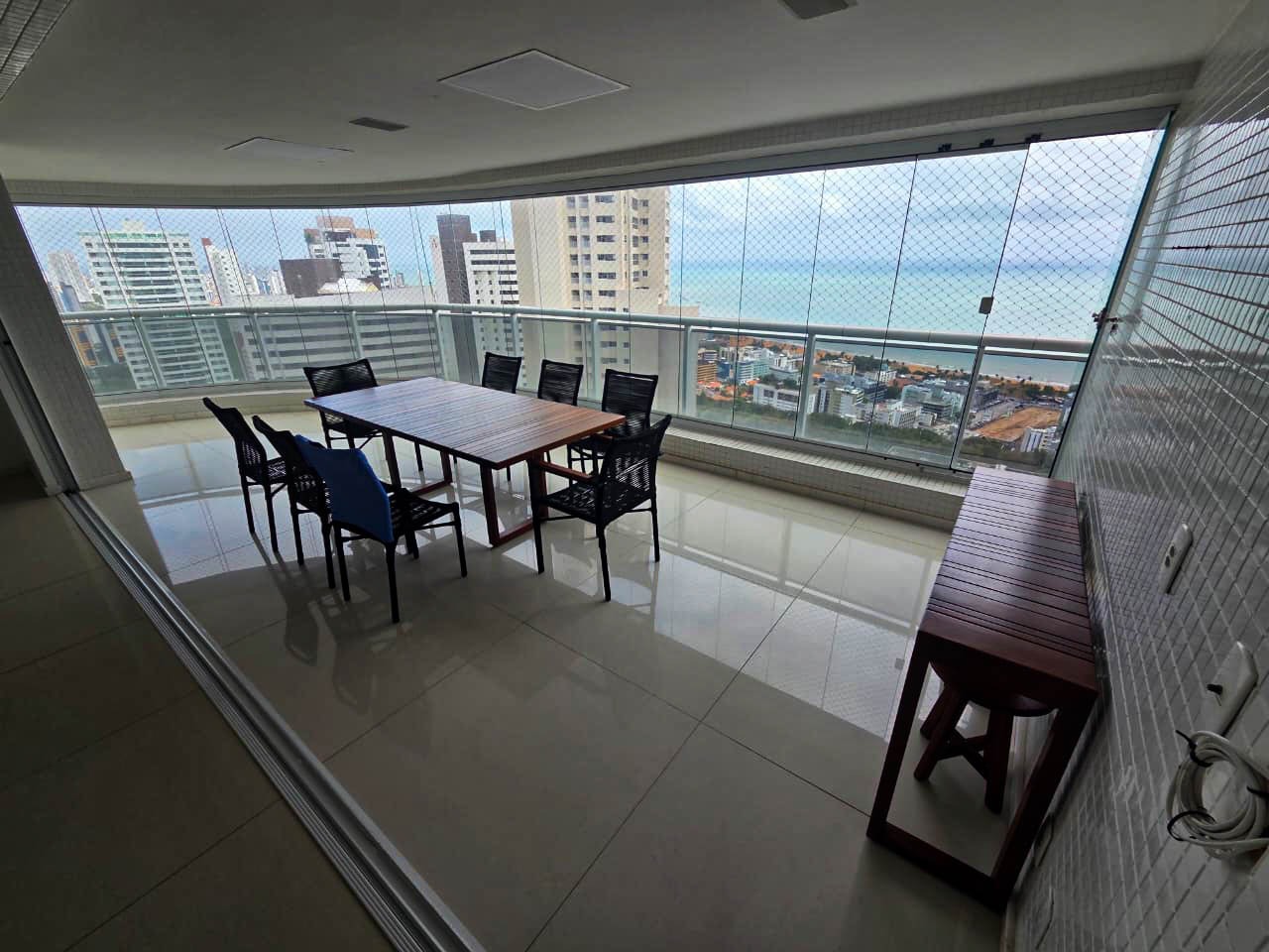 Esse apartamento possui sala ampla para dois ambientes, é perfeita para receber bem, integrada a uma varanda gourmet com vista mar que transforma qualquer momento em experiência. A cozinha é separada da área de serviço, garantindo mais organização e praticidade no dia a dia. São quatro quartos, todos com suítes, oferecendo privacidade e conforto para toda a família, além de DCE e dois banheiros sociais que completam a funcionalidade do imóvel. Um apartamento pensado para quem valoriza exclusividade, bem-estar e qualidade de vida em cada detalhe.