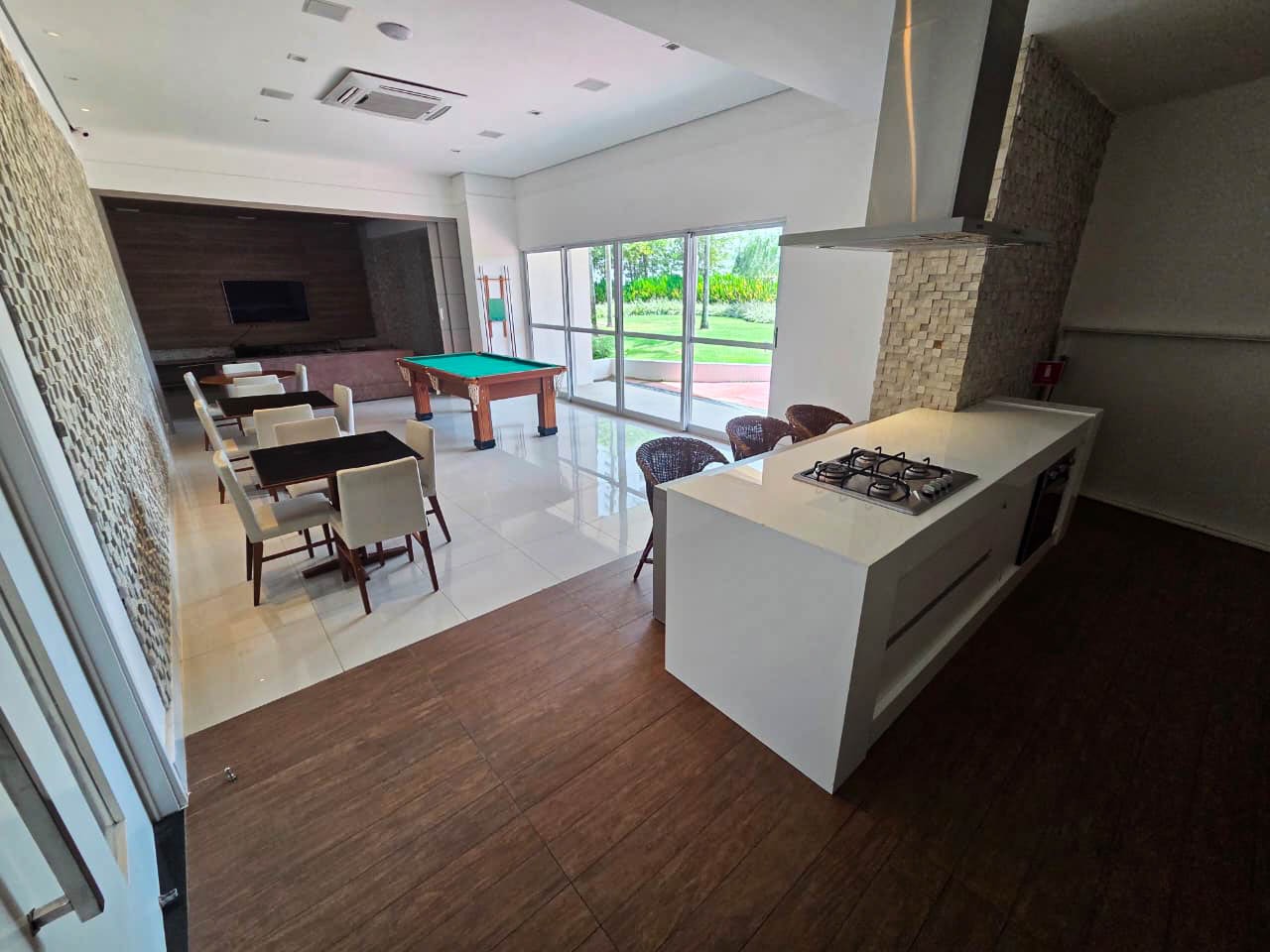 > Área de lazer com, piscina, churrasqueira, espaço gourmet e playground;