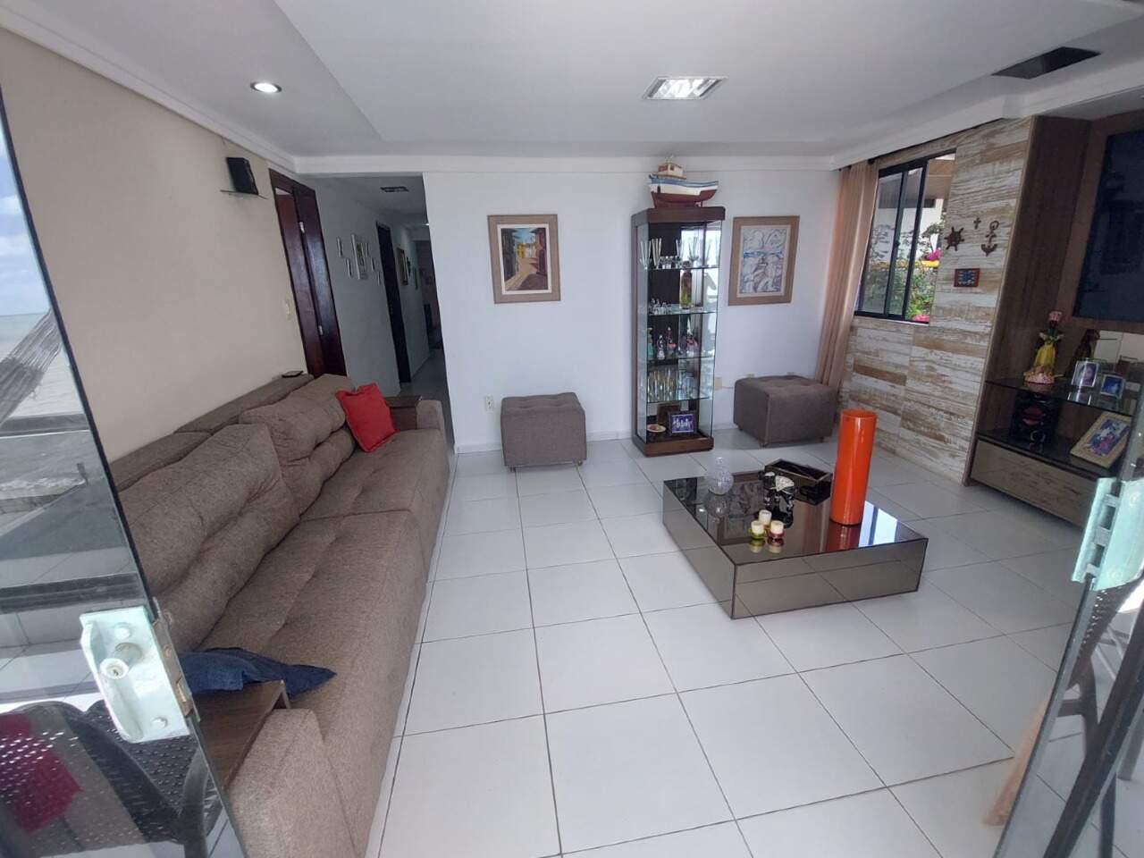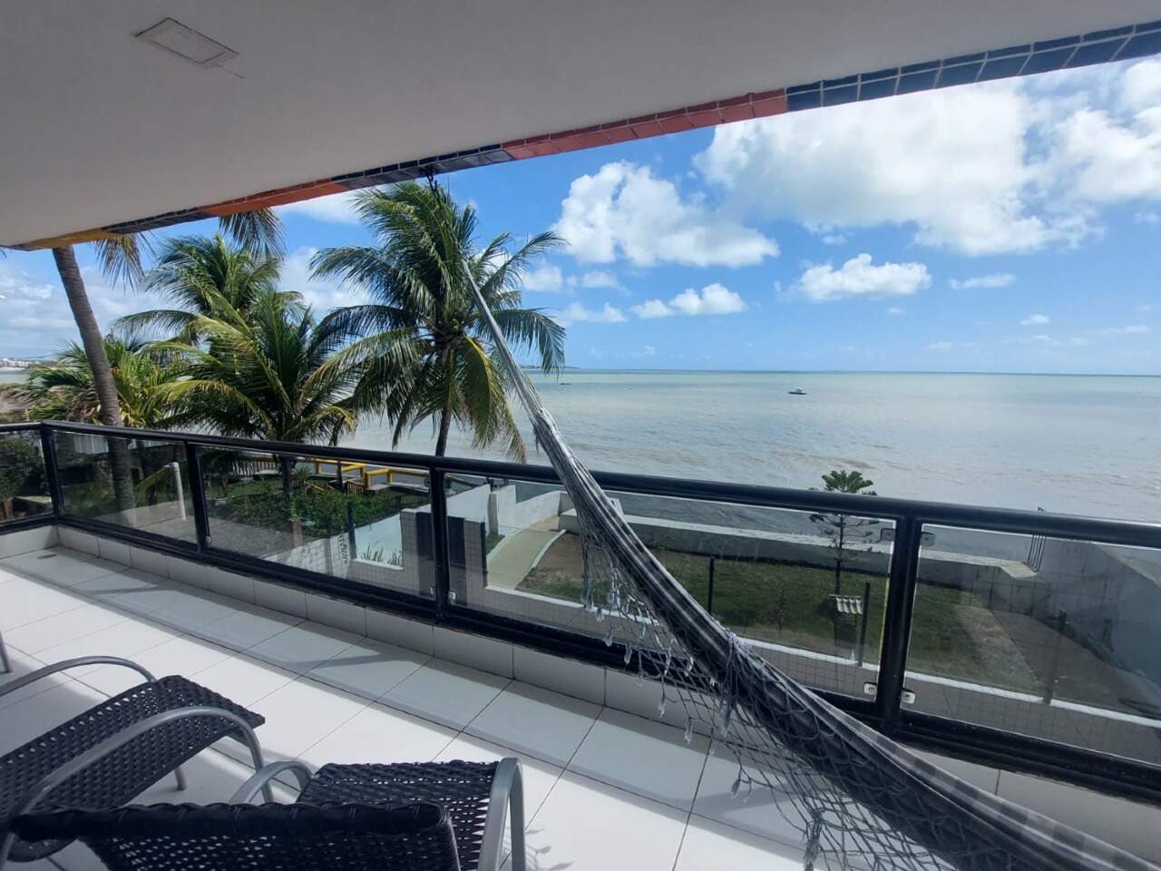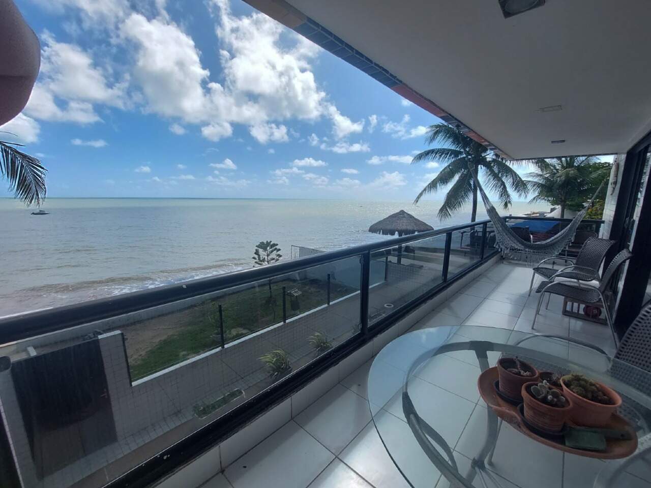 Apartamento pé na areia com três quartos, sendo duas suítes, sala ampla para dois ambientes, cozinha americana, área de serviço, e aquela varanda ampla com uma vista Linda para o Mar.
