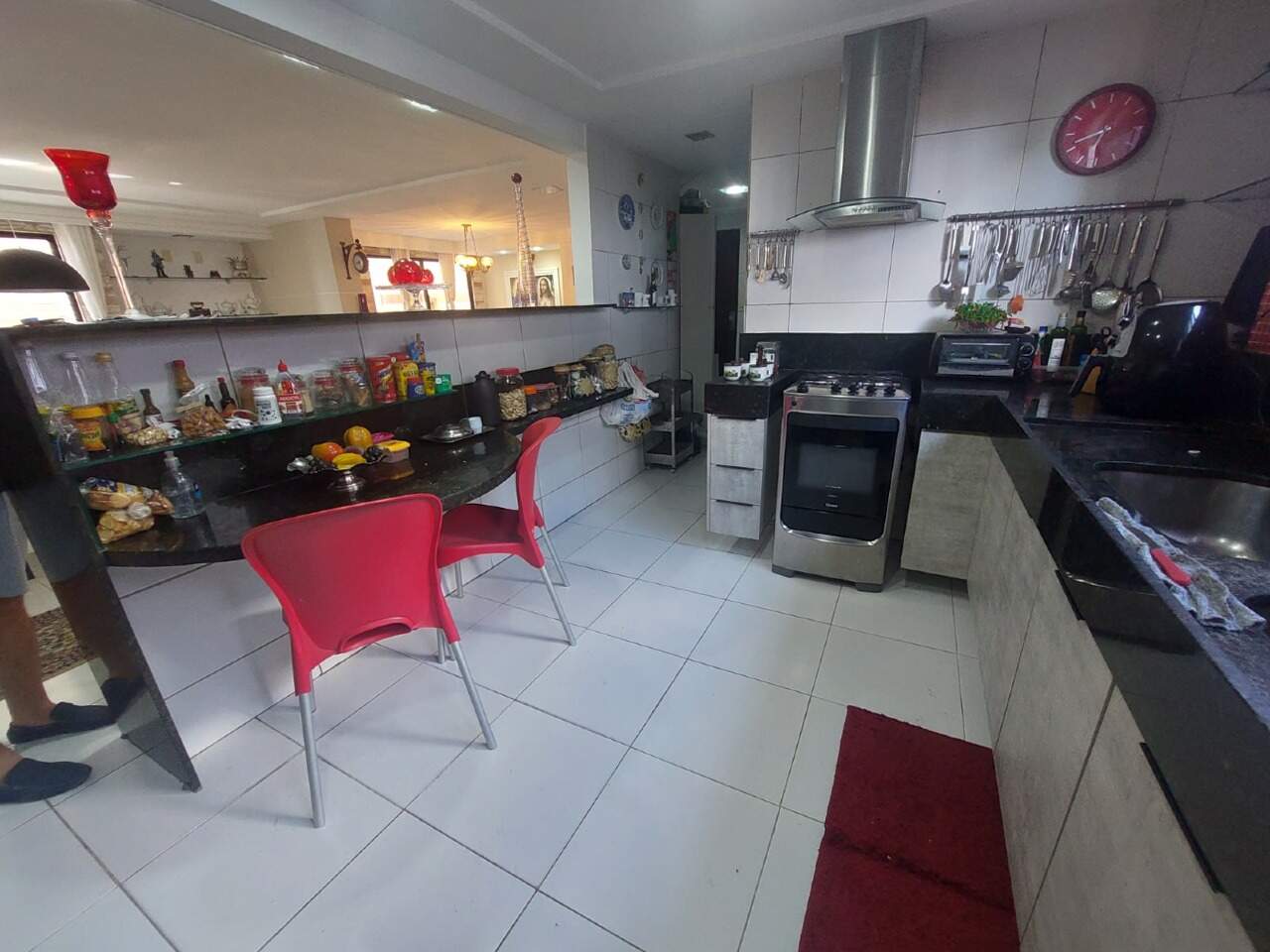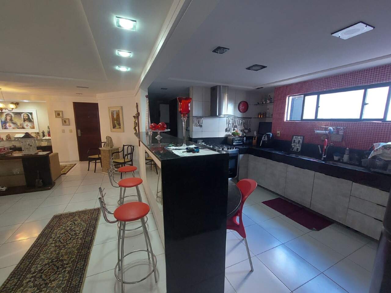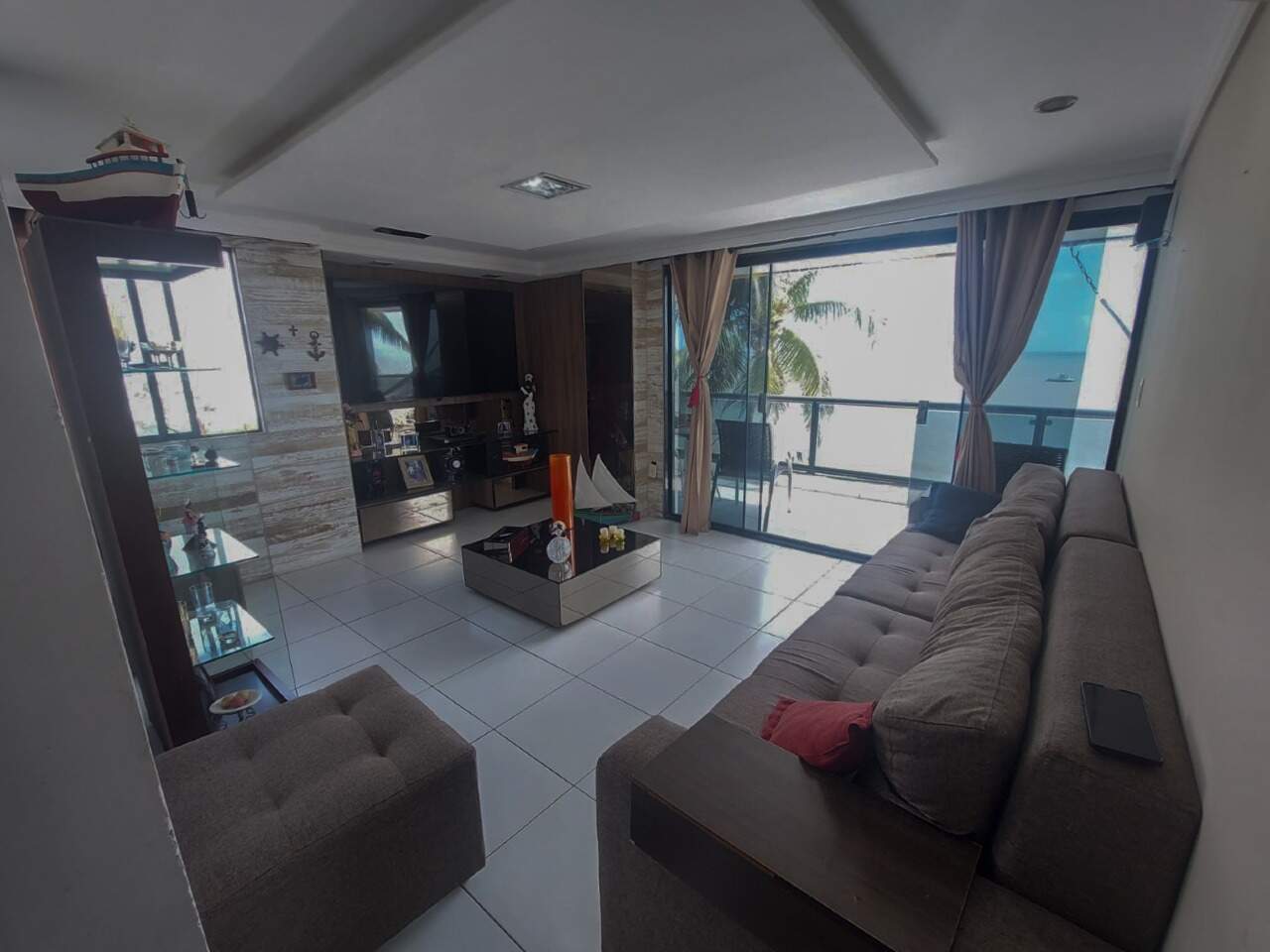 Apartamento pé na areia com três quartos, sendo duas suítes, sala ampla para dois ambientes, cozinha americana, área de serviço, e aquela varanda ampla com uma vista Linda para o Mar.