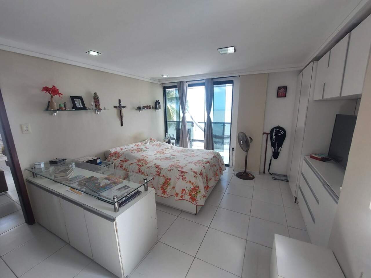 > Uma suíte com acesso a varanda e vista mar