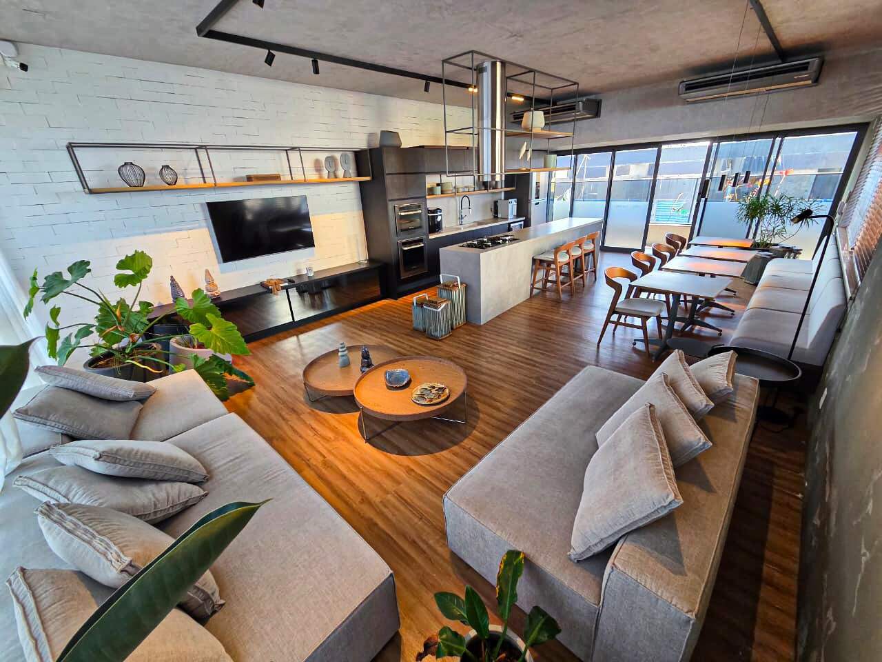 Apartamentos garden com 226,60m² possuindo três suítes, DCE, lavabo, sala de estar/jantar, cozinha com área de serviço integrada e área privativa gourmet com hidromassagem.
