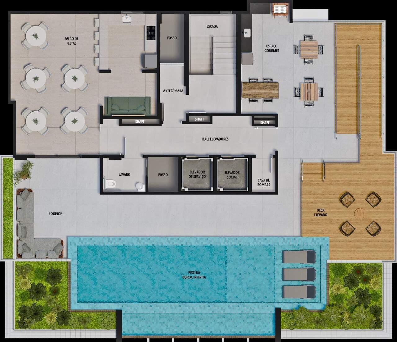 O empreendimento tem uma vasta área de lazer com recepção, delicery, piscina com borda infinita, espaço gourmet, churrasqueira, mini mercado, brinquedoteca, sala de estudos, salão de festas, solario, jardim, espaço zen, academia, bicicletário, elevador e muito mais para garantir a sua diversão.