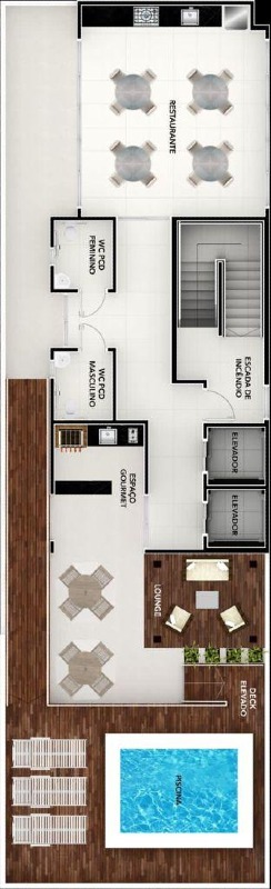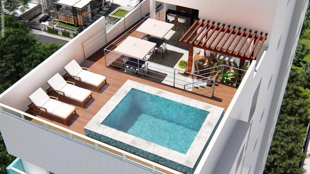 > Área de lazer com piscina e espaço gourmet;