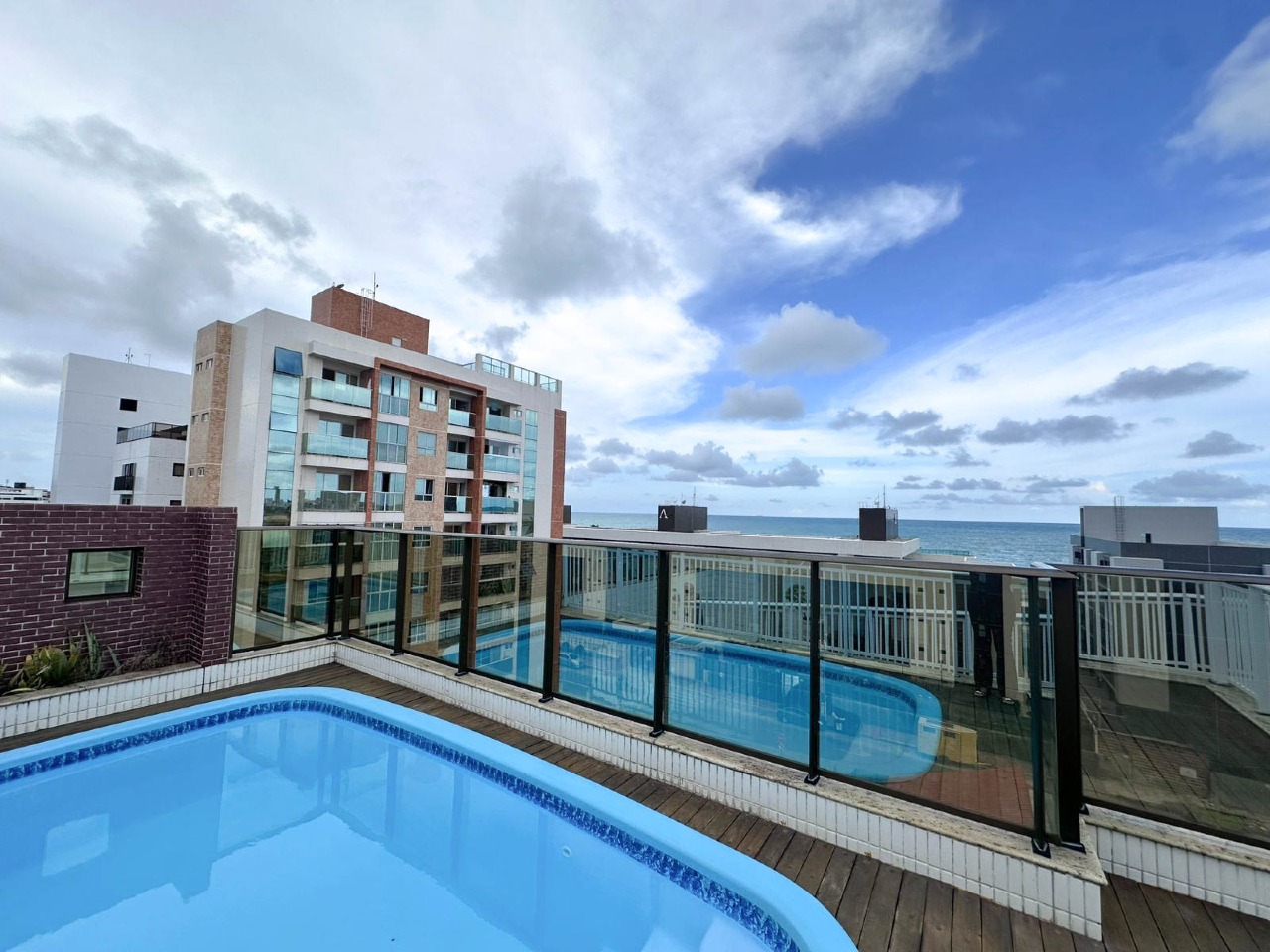 > Área de lazer com piscina e churrasqueira;