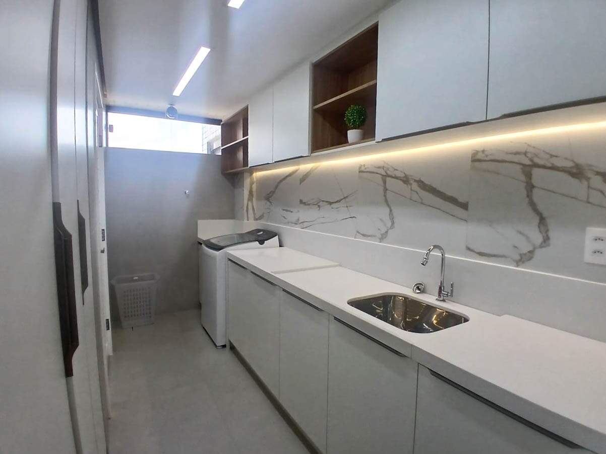 A sala ampla para três ambientes com duas varandas sendo uma gourmet oferece um local perfeito para relaxar ou receber visitas, enquanto a cozinha com área de serviço integrada traz praticidade e organização para o dia a dia. Os cinco quartos, todos suítes e duas com closet, confortáveis e privativas, juntamente com o lavabo bem planejado e escritório, completam este imóvel que atende todas as suas necessidades.