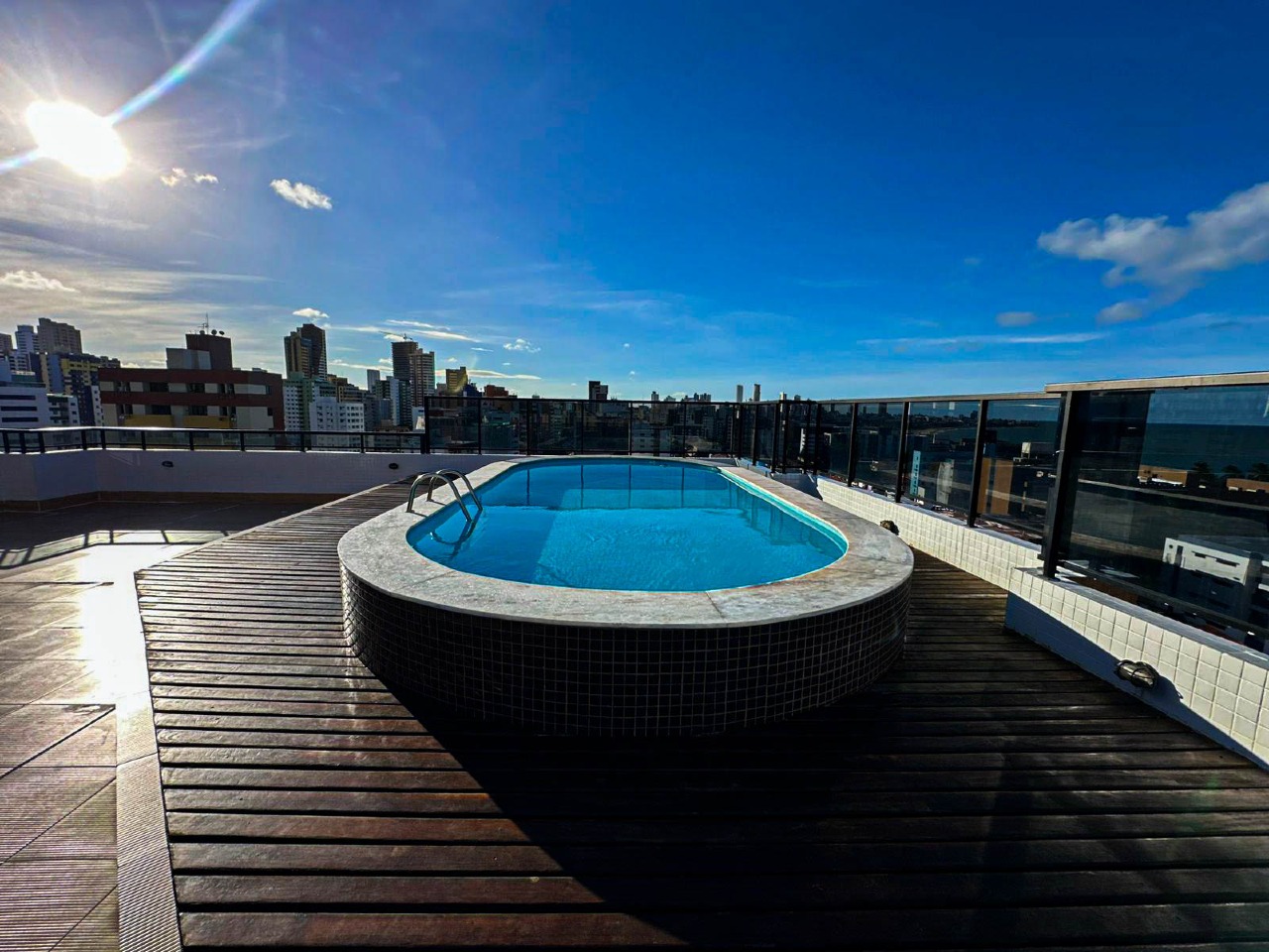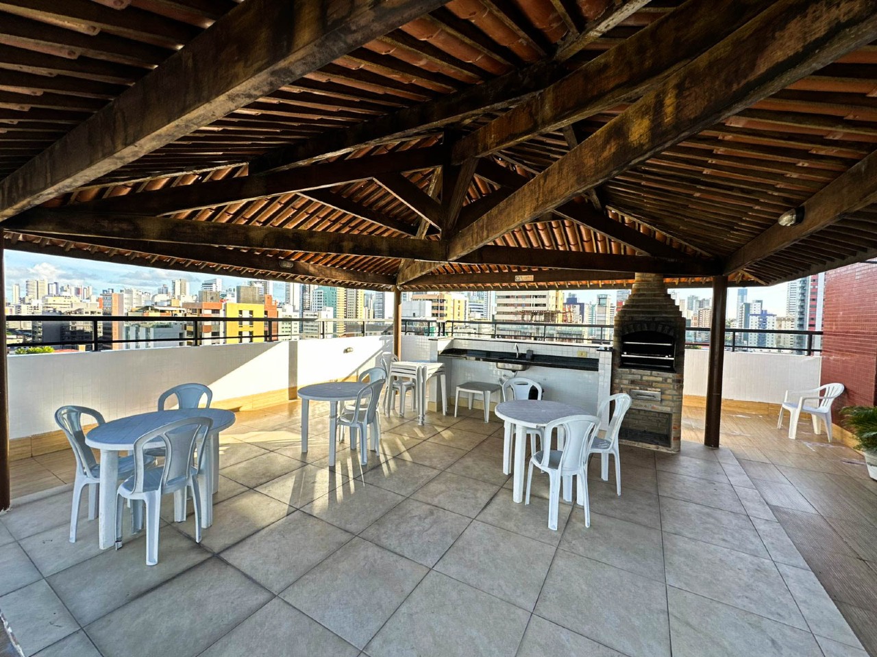 > Área de lazer com piscina e churrasqueira;