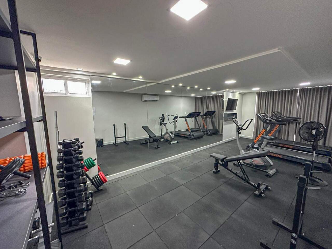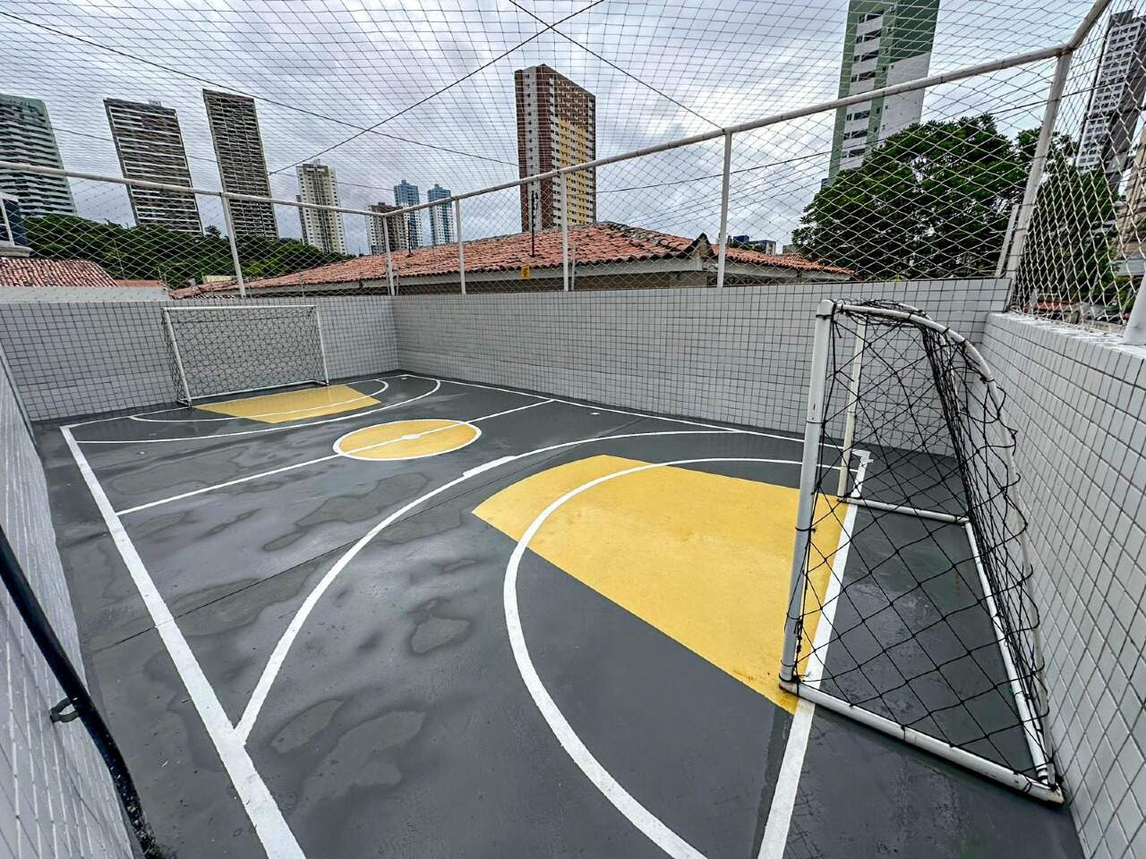 > Espaços comuns do prédio contam com academia, salão de festas, salão de jogos, quadra poliesportiva e playground;