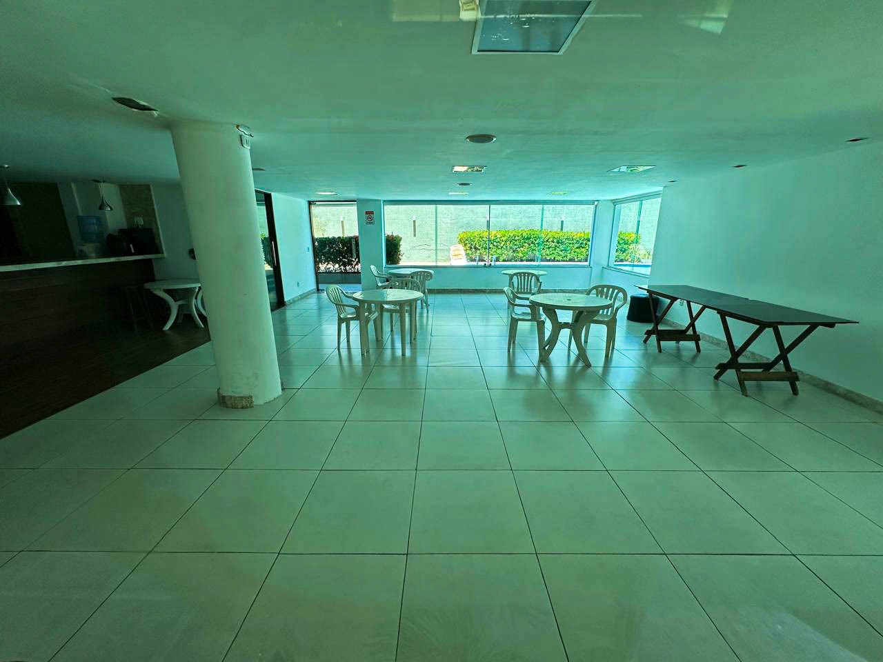 > Área de lazer com piscina, espaço gourmet e salão de festas;