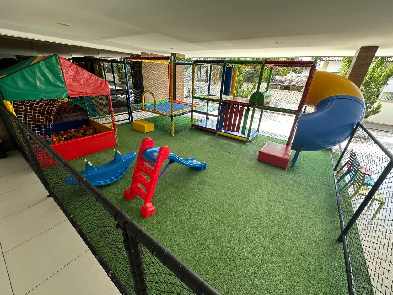 > Academia, quadra poliesportiva, sala de massagem, salão de jogos, home cinema, playground e salão de festa;