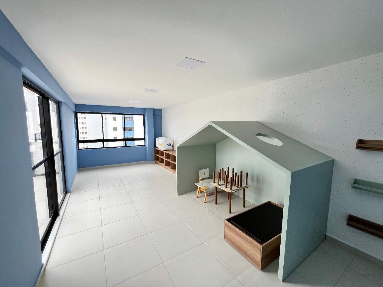 > Academia, playground, brinquedoteca e salão de festa,