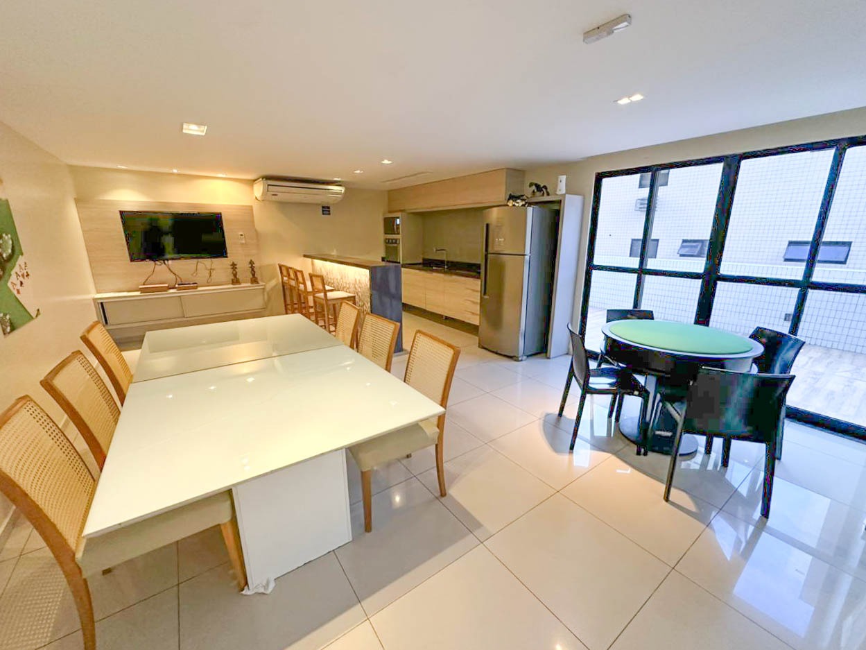 Apartamento mobiliado para alugar, com sala ampla de dois ambientes, varanda gourmet com excelente vista mar, cozinha com área de serviço integrada, três quartos, tres suítes e um banheiro social! Proporcionando uma ótima distribuição dos ambientes e prezando pelo seu conforto.