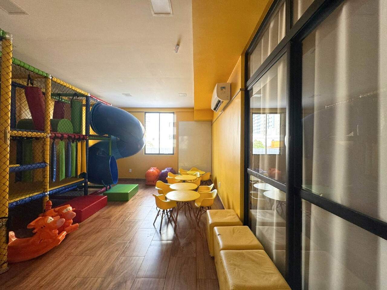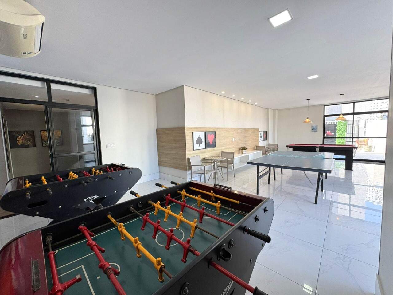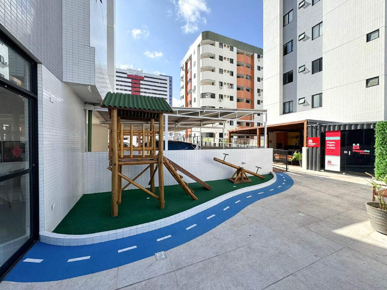> Prédio com piscina, churrasqueira, área gourmet, academia, salão de jogos, salão de festas, brinquedoteca, playground, mini market, home cinema, bicicletário e sala de estudos;