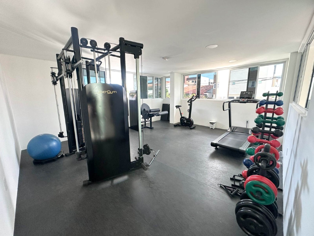 > Prédio com piscina, academia e salão de festas;