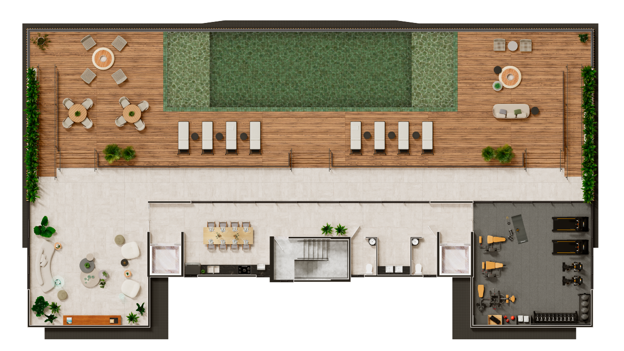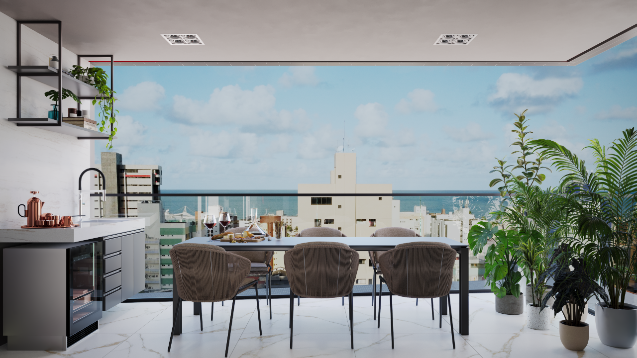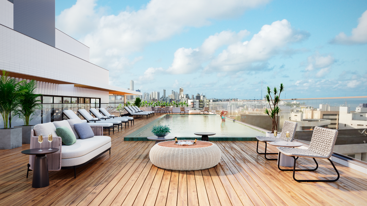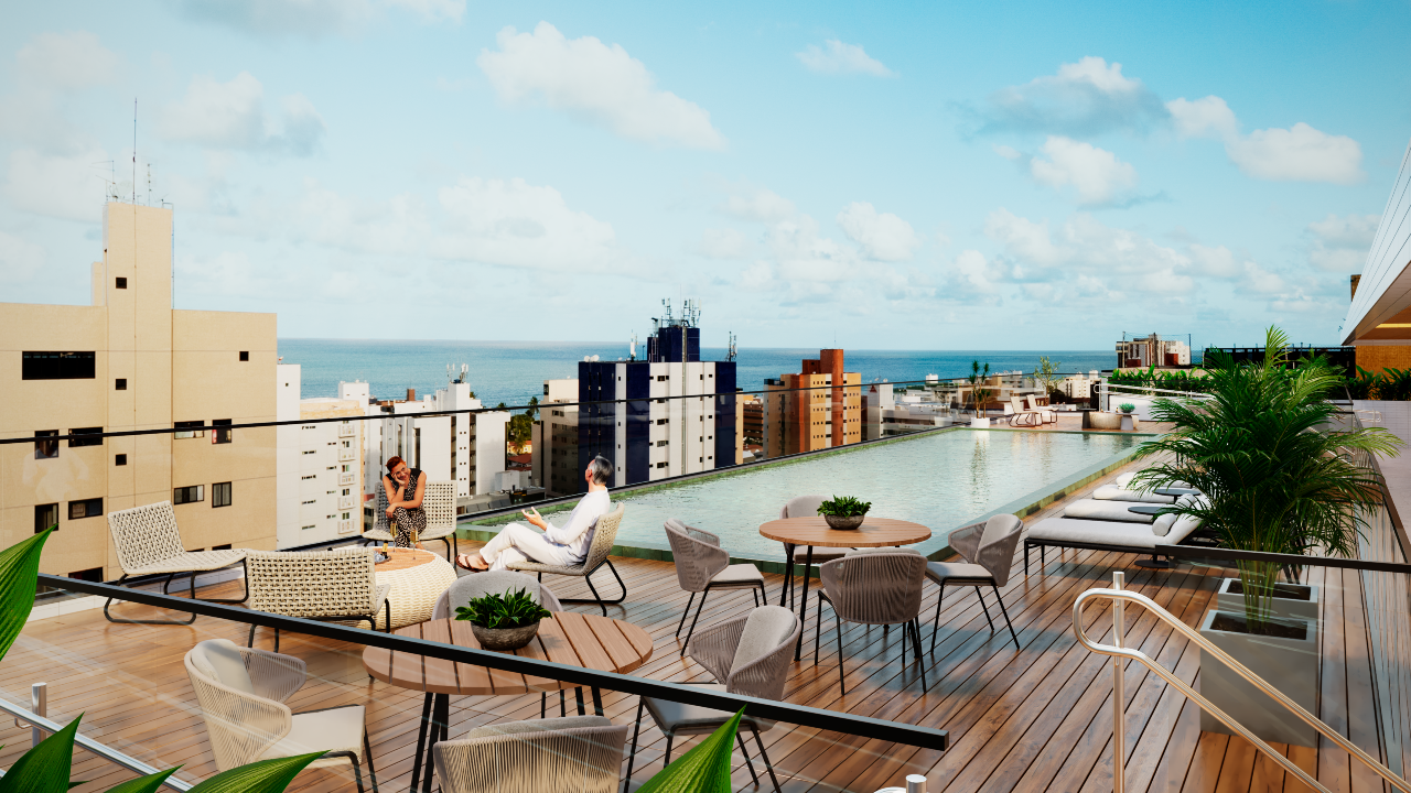 O empreendimento tem uma área de lazer com Bicicletário, Playground, Área de Lazer na Cobertura com Piscina Adulto e Infantil, Sky Lounge, Academia com Vista Panorâmica, espaço pet, co-working, Salão de jogos, e o Mar para garantir a sua diversão.