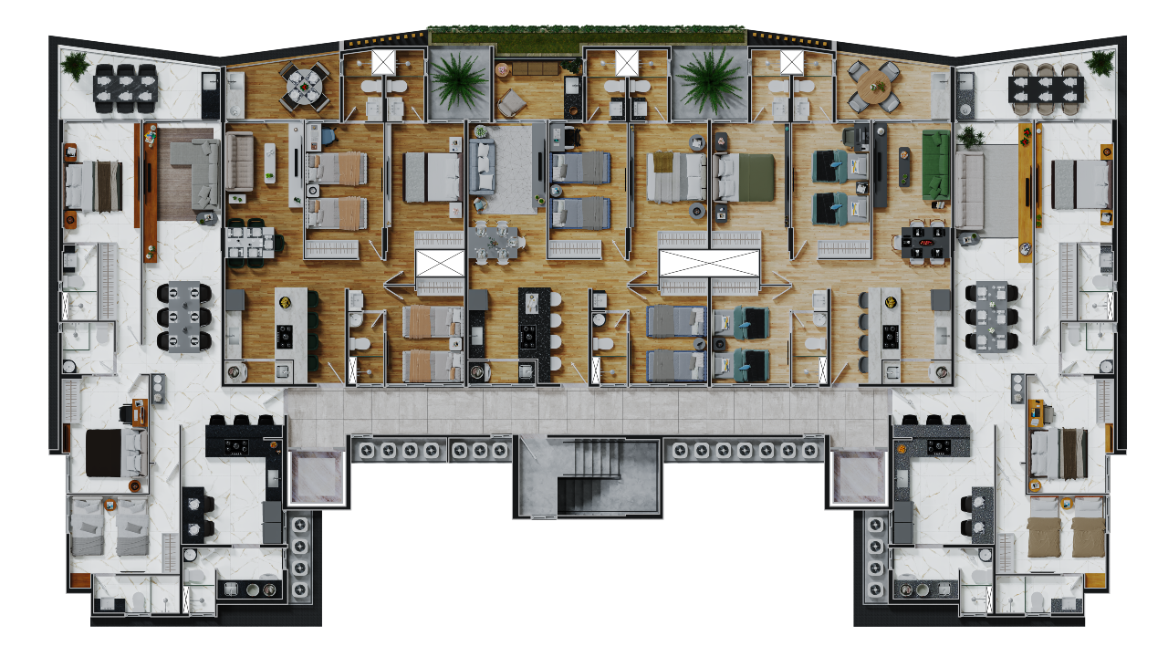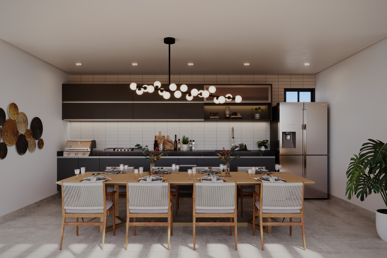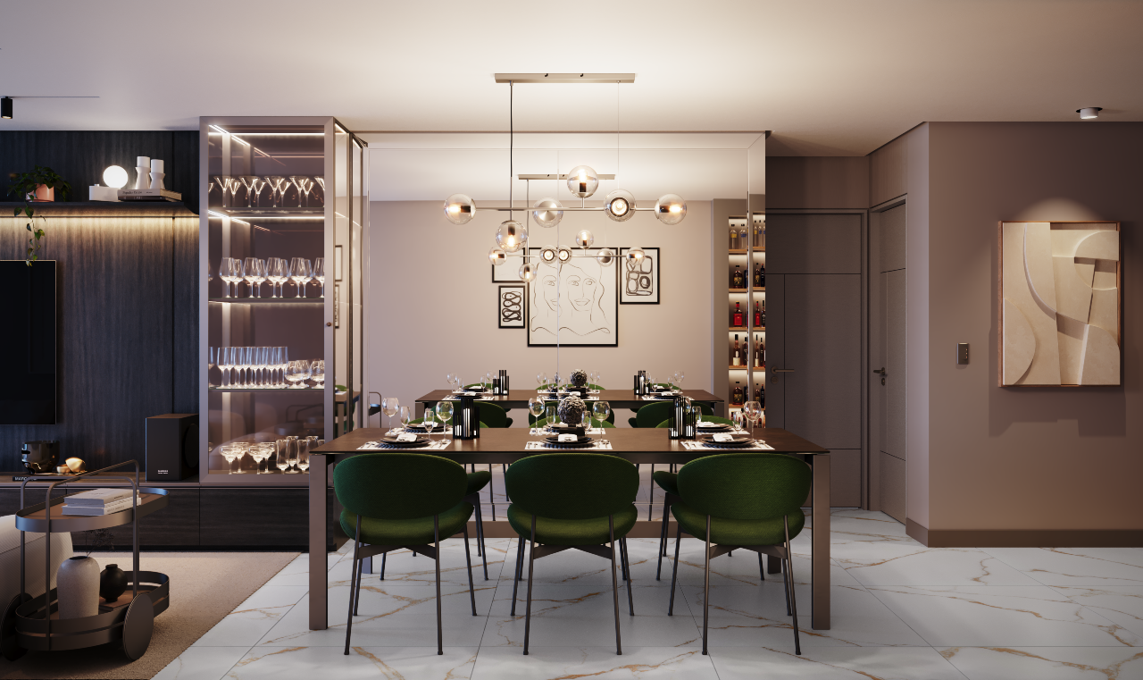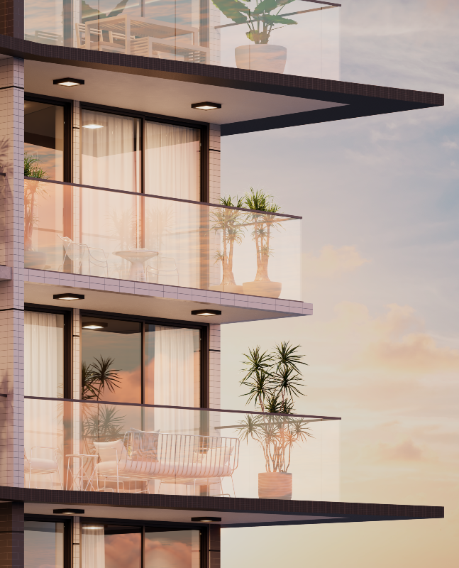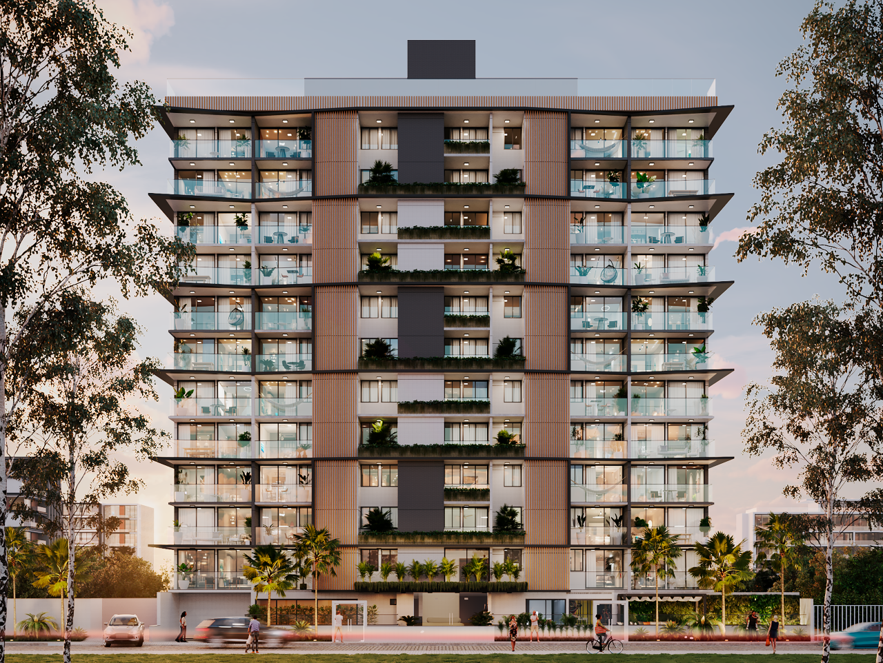 Apartamentos com 80m² a 110m² possuindo e três quartos sendo duas ou três suítes, sala de estar, sala de jantar, cozinha, área de serviço separada e varanda gourmet.
